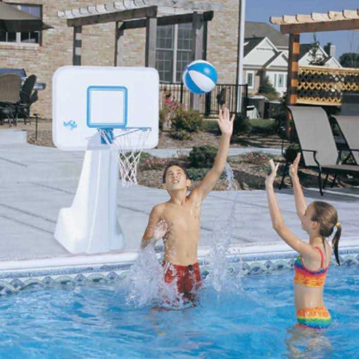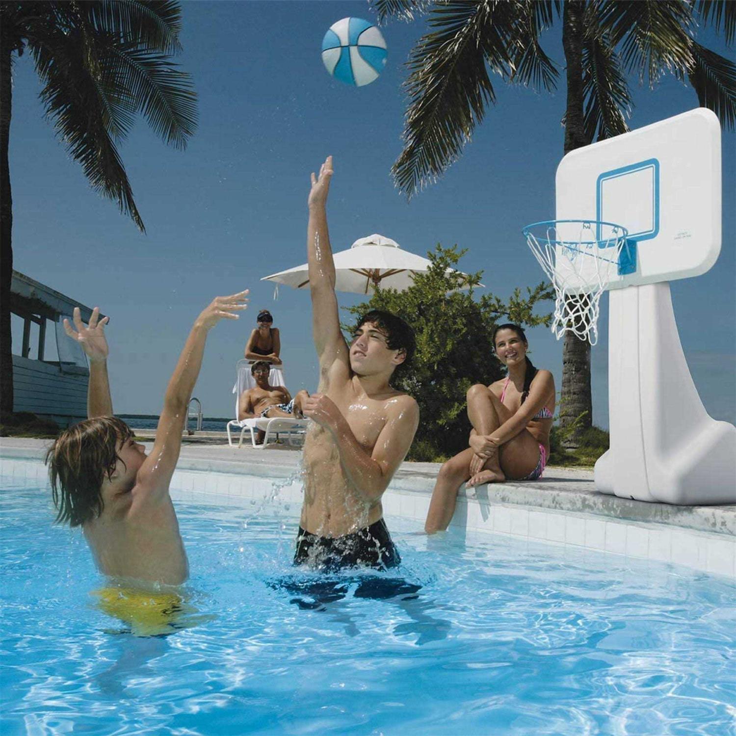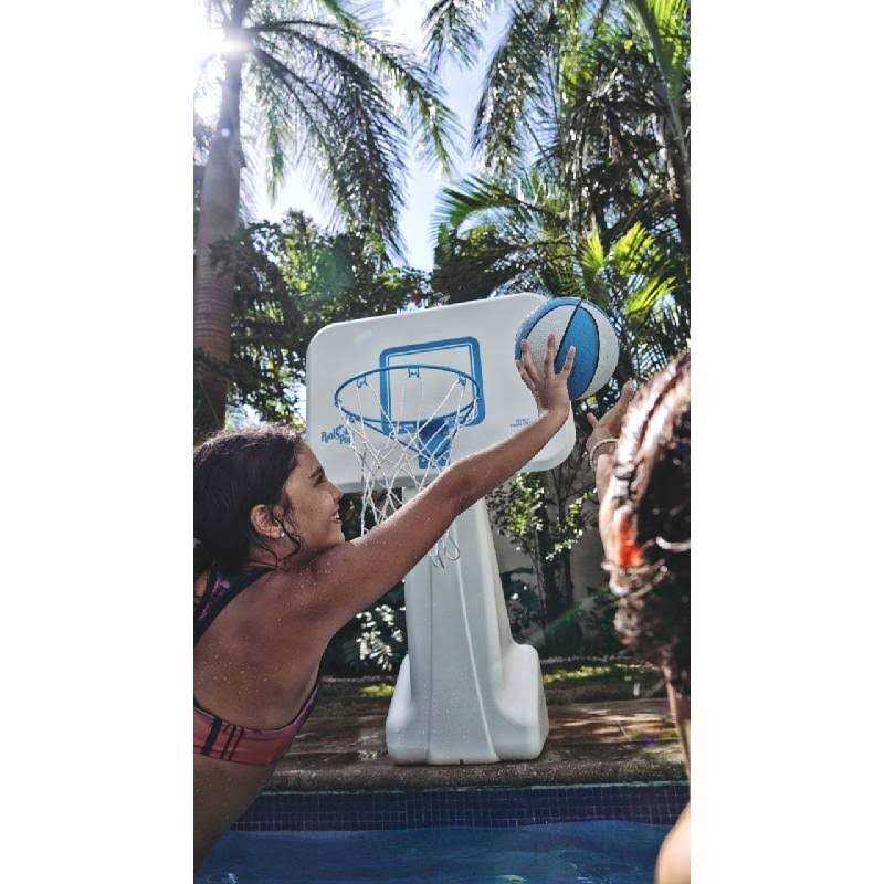 - Unit comes complete with a mid size, color matched basketball with textured grip specifically designed for water use.