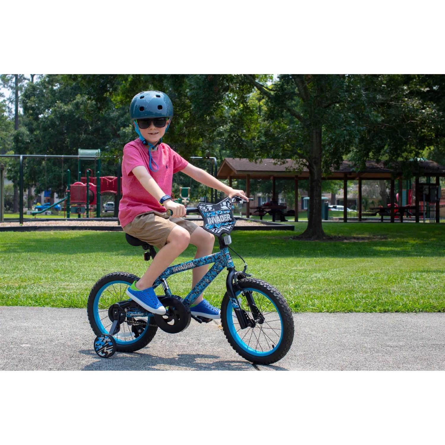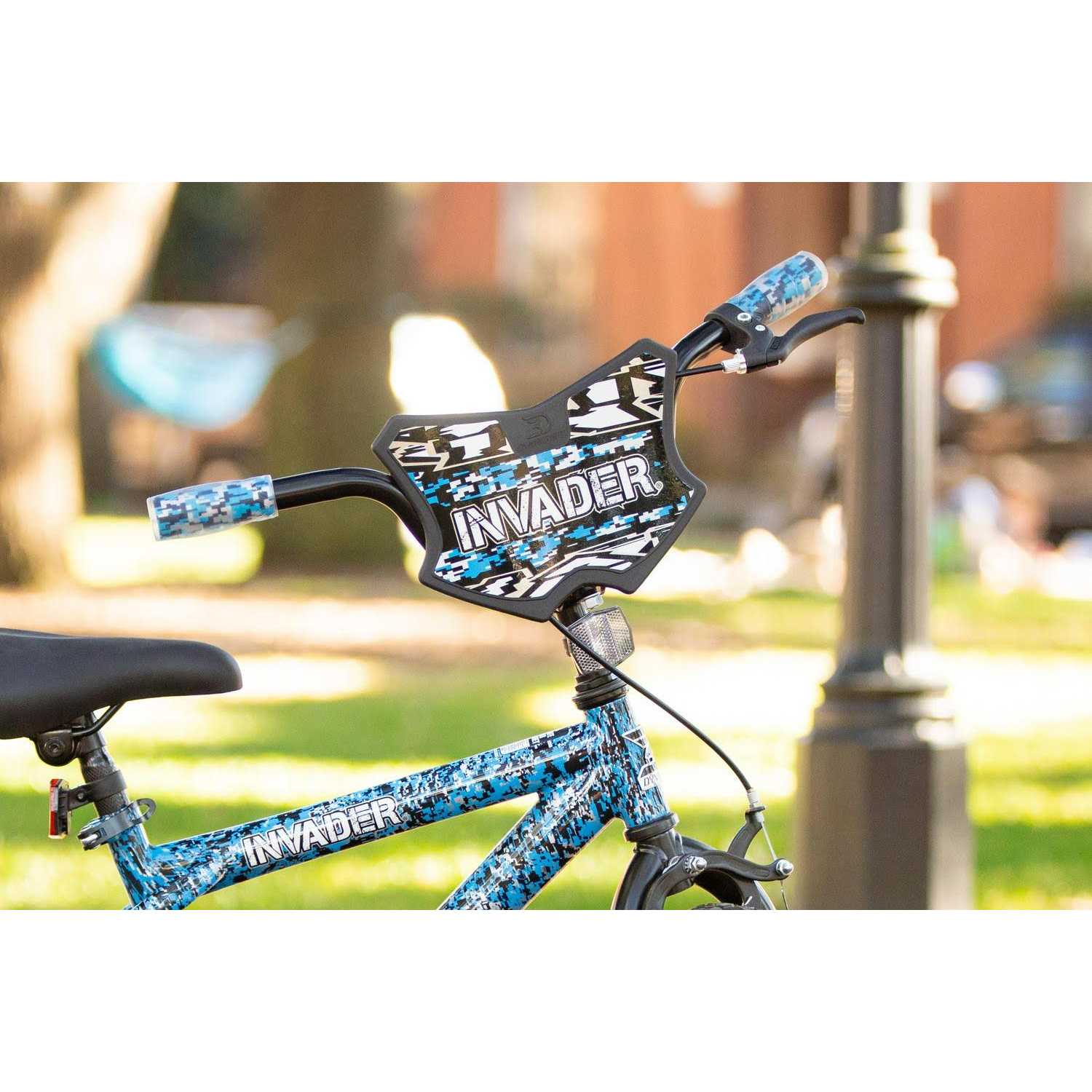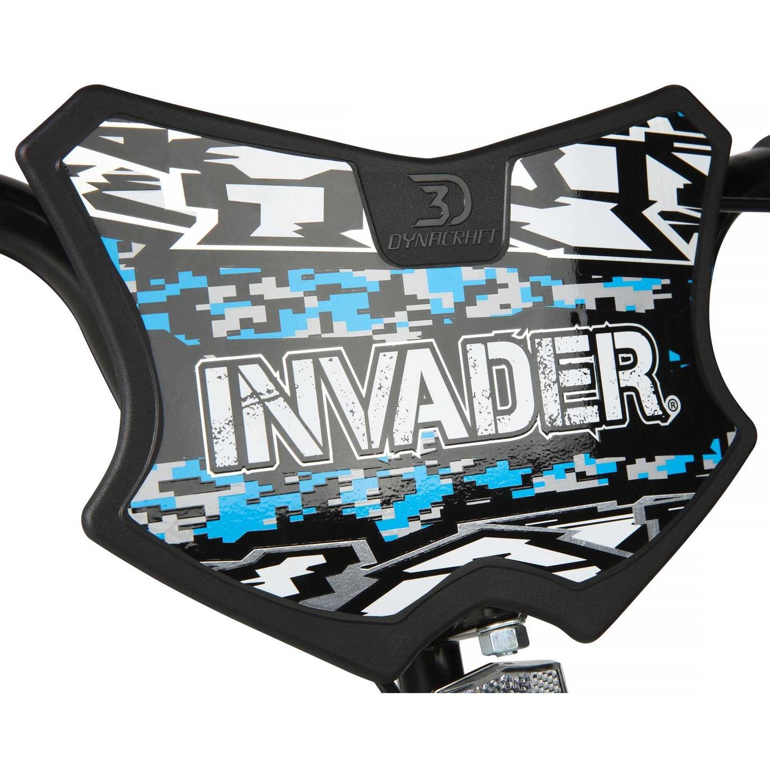 Take over the sidewalks in style with the sleek and bold Dynacraft Invader 16-inch Boys Bike. Featuring an eye-catching blue-and-black Digi-camo paint finish on the frame, handlebar grips, and training wheels, this bike is sure to turn heads. The Invader-branded handlebar shield adds an extra touch of coolness as your young one cruises down the sidewalk. With an adjustable seat post, this bike can grow with your child, while the adjustable/removable training wheels provide an added layer of comfort until they’re ready to ride solo. The rear coaster brake and front hand brake make stopping smooth and easy, ensuring your child’s safety and confidence. Get ready to command attention with the radical Dynacraft Invader 16-inch Boys Bike.