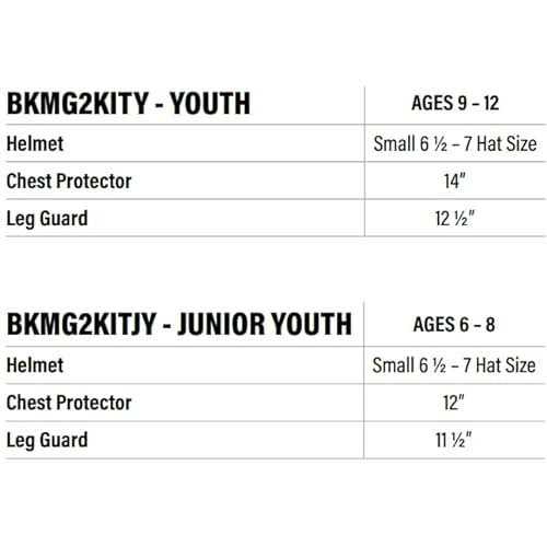 - YOUTH SET SIZING: Helmet – Small, Chest Protector – Youth, Leg Guards