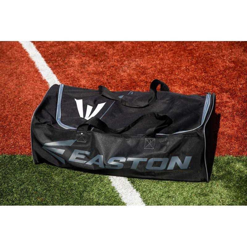 Easton E100G Equipment Bag A159 009 The Easton E100G Equipment Bag is designed to help you get your teams gear to and from the field. The E100G Equipment Bag features a large main compartment with a U-shaped zipper opening for easy loading and unloading. This bag also features massive lockable zippers and reinforced straps around the bag.