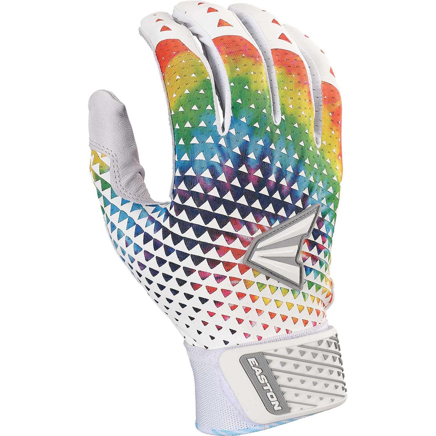 These Easton Ghost NX Fastpitch Batting Gloves give softball hitters superior comfort, grip, and style when they step into the box. The upgraded one-piece goatskin leather palm is ultra durable, so these gloves hold up through long sessions in the cage. Also, the back-of-hand material is made of Lycra infused with Structured-Flex Silicone for an ideal fit that’s firm, but not too tight. The Bio-Dri wrist liner wicks away sweat and moisture, keeping your hands dry and comfortable. And as for style, with a special new design and nine different colorways, you’re sure to find something that matches your team and your personal flair.