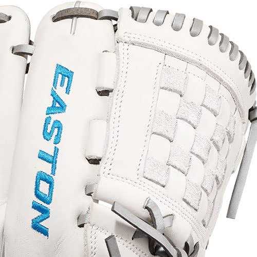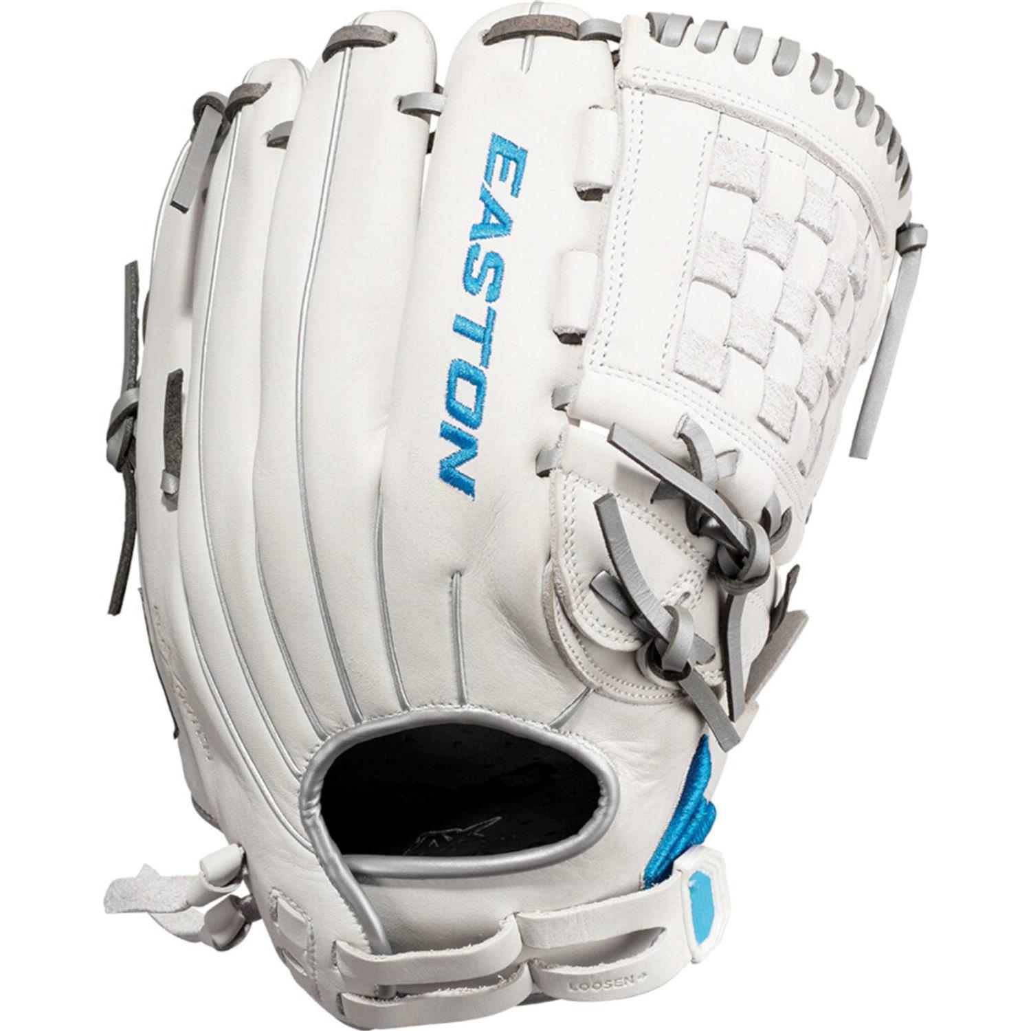 Easton’s Ghost series is a symbol of elite fastpitch play. The Ghost NX 12 inch Fastpitch Pitcher/Outfield glove fits right in. These gloves were crafted in gameday-specific patterns designed for smaller hands and perfectly suited to the fastpitch game. On the outside, the Game Ready Diamond Pro Steer leather and Flex Notch closure system make this glove super soft and easy to handle right away. The Quantum Closure System on the glove back ensures a perfect fit for every player, and the interior Ax Suede microfiber lining creates unmatched comfort and durability. Also, the striking white-and-blue colorway and professional-grade silver metallic rawhide lace are sure to turn heads. Hit the field with the Ghost NX 12″ Fastpitch Pitcher/Outfield Glove and master the softball diamond.