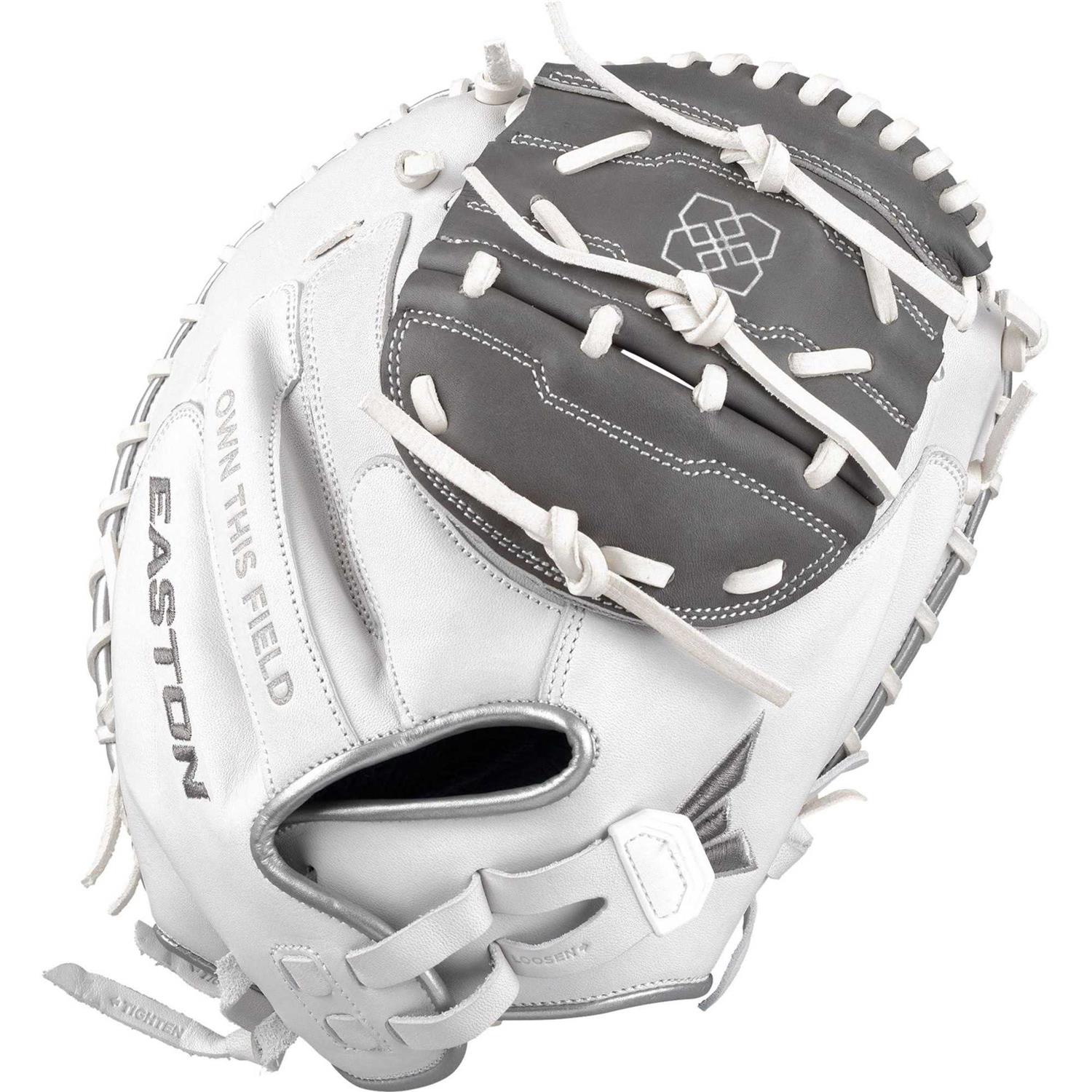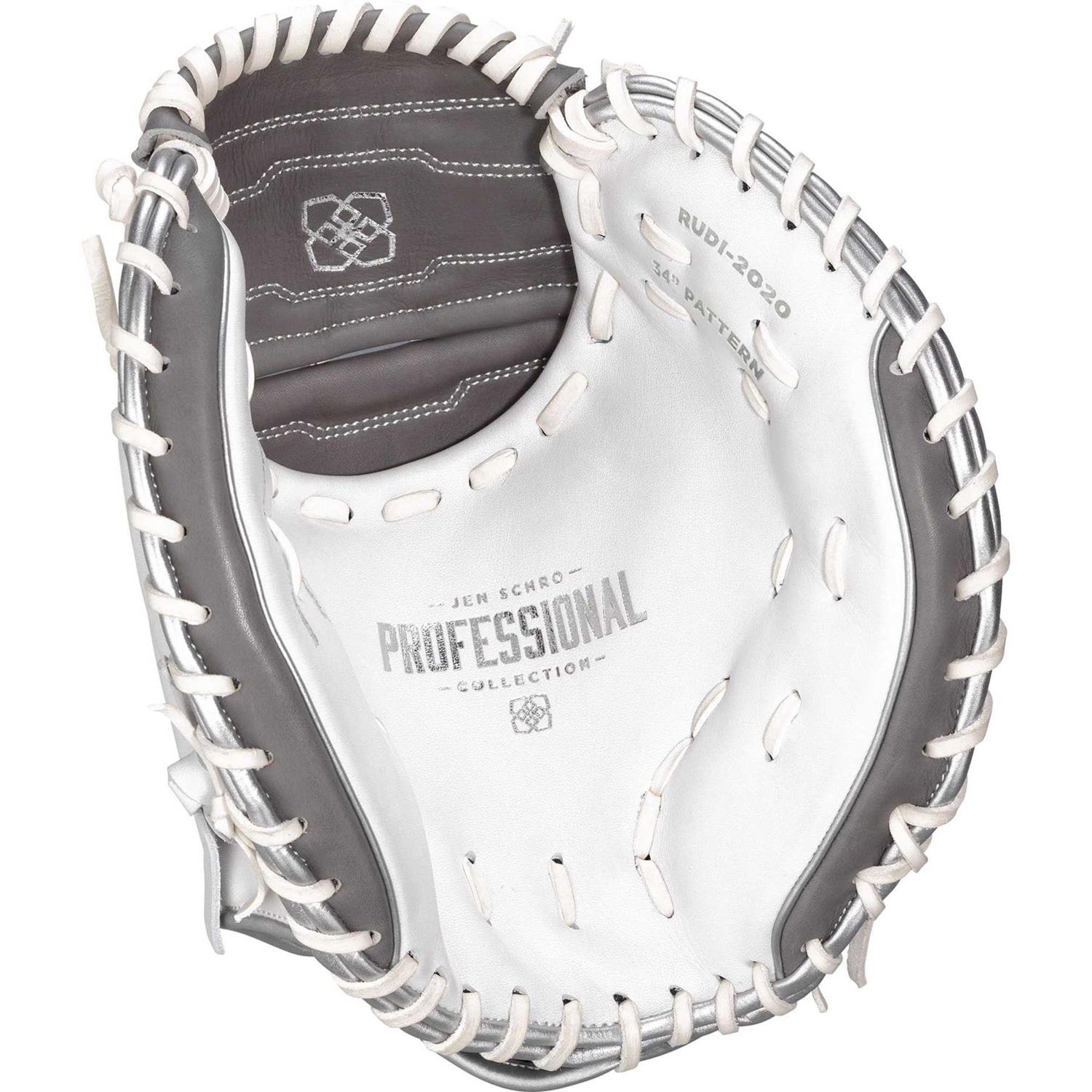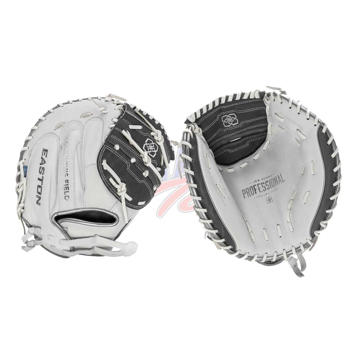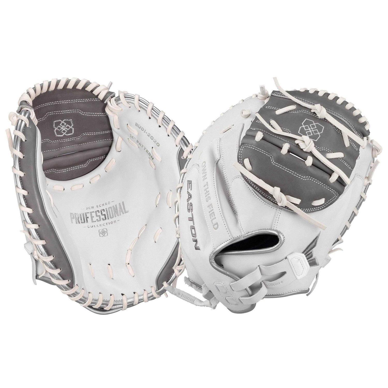 Easton Pro Signature Jen Schroeder 34″ Fastpitch Softball Catcher Mitt RUD 1 Piece White/Grey 34 Right Hand