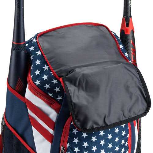 The Reflex Backpack provides ample storage with a large compartment that holds a full set of gear for fielding and batting. Two full-length bat sleeves run down the side protecting your bats while keeping them close at hand. A personal pocket at the very top, plus a front personal pocket, gives you a multitude of organization options. Two of the largest mesh pockets in the Easton line hold an oversized water bottle each, and can accommodate even more.