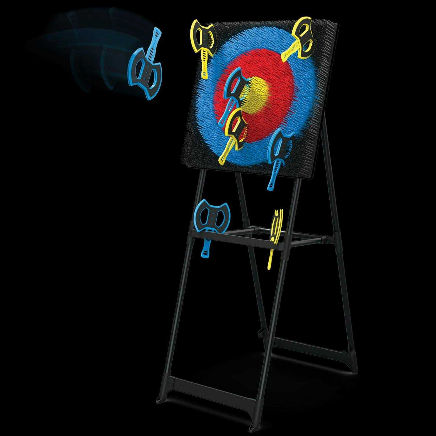 Grab your axe, take aim at the target, and go for the bullseye! The target frame stands over 5 feet tall and is constructed out of 1-inch steel tubing and can handle your best shot. This set includes 8 throwing axes that are fun for all ages. The axes are constructed from plastic and foam and are specifically designed to stick in the unique bristle target. Features built-in axe storage and a folding target design for portability and storage. So, get out and test your accuracy, sharpen your skills, or just have fun with your friends and family throwing axes at the EastPoint Sports Ultimate Axe Throw Target!