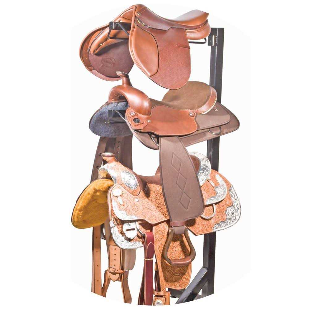 Keep your saddles organised, clean, and in top condition. Key Features Declutter your tack room by hanging bulky saddles up on this upright construction 4 tiers, holds 4 saddles Each tier locks into place against the frame Can hold heavy western saddles or English saddles Well balanced and extremely stable Well-constructed from a 1 1/2 inch square tubing frame and base Five points underneath the legs help keep the rack level Can be disassembled and assembled in minutes, to transport to shows A great space saver in the tack rooms or at a show! Measurements: 182cm high 77cm wide (at the base) Each saddle rack measures 63cm long There is a 36cm gap between each saddle rack.Please note: This is a bulky item and the free freight offer does not apply. Freight will be applied at checkout.