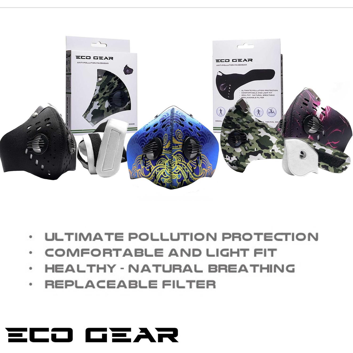 ECO-GEAR Anti Pollution Face Mask with Military Grade N95 Protection | Anti Smoke, Exhaust Gas, Dust, Pollen, Allergens | Hiking, Running, Walking, Cy