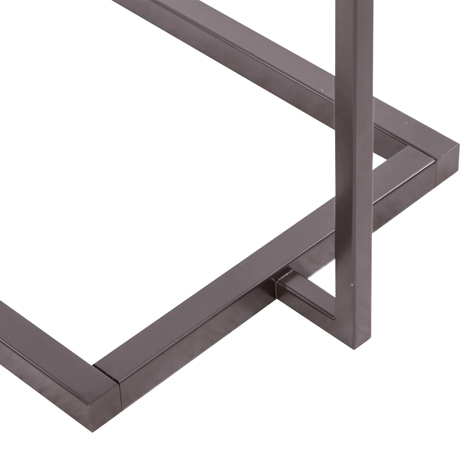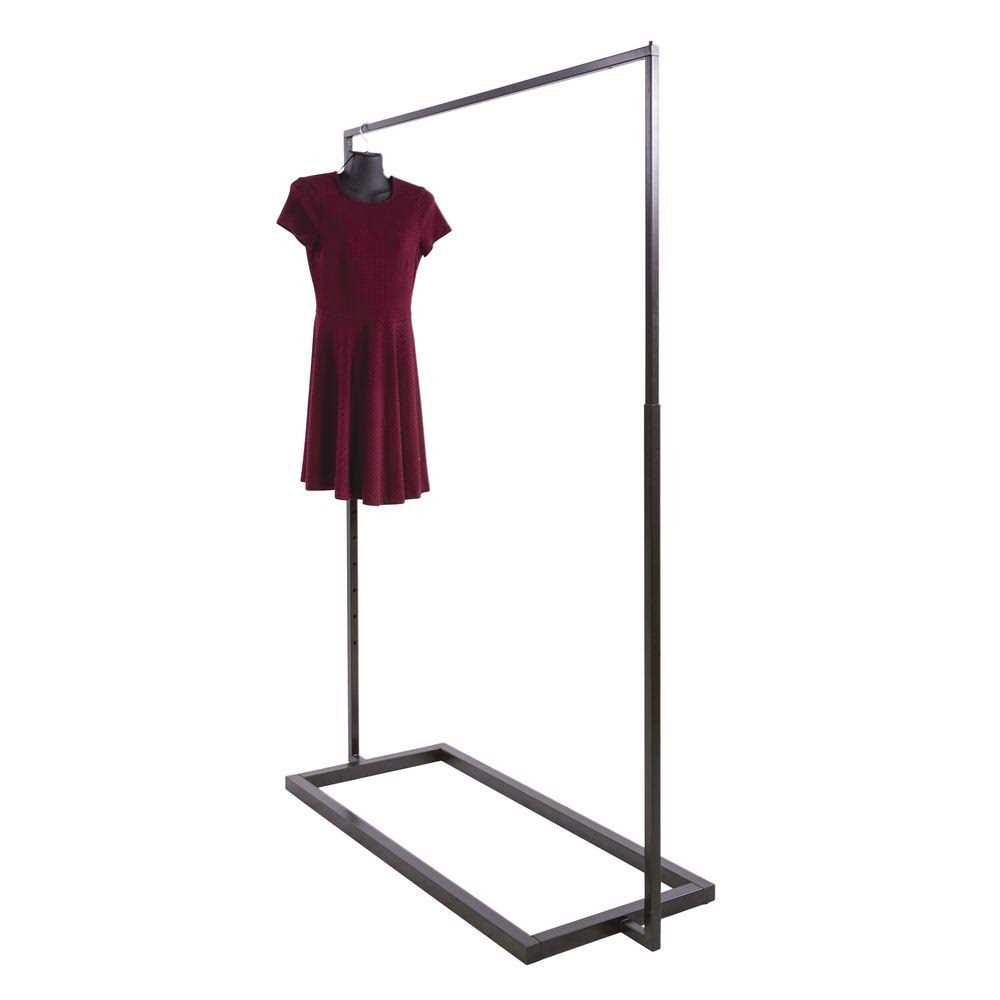 Due to popular demand our exciting and upscale Linea Collection has been expanded to include our sleek new Adjustable Height Extended Ballet Bar. Made from 1″ square tubing and finished with a refined Statuary Bronze epoxy coating. The height adjusts from 45″ to 72″ in 3″ increments. The base dimensions are 54″W x 20″L. The unit’s hang bar is 52″ long with a discrete tab stop on each end to prevent garments from falling. The extended ballet bar forms the perfect frame to display a rack of evening gowns and bridalwear anywhere on your selling floor. The unit includes levelers to compensate for uneven flooring.