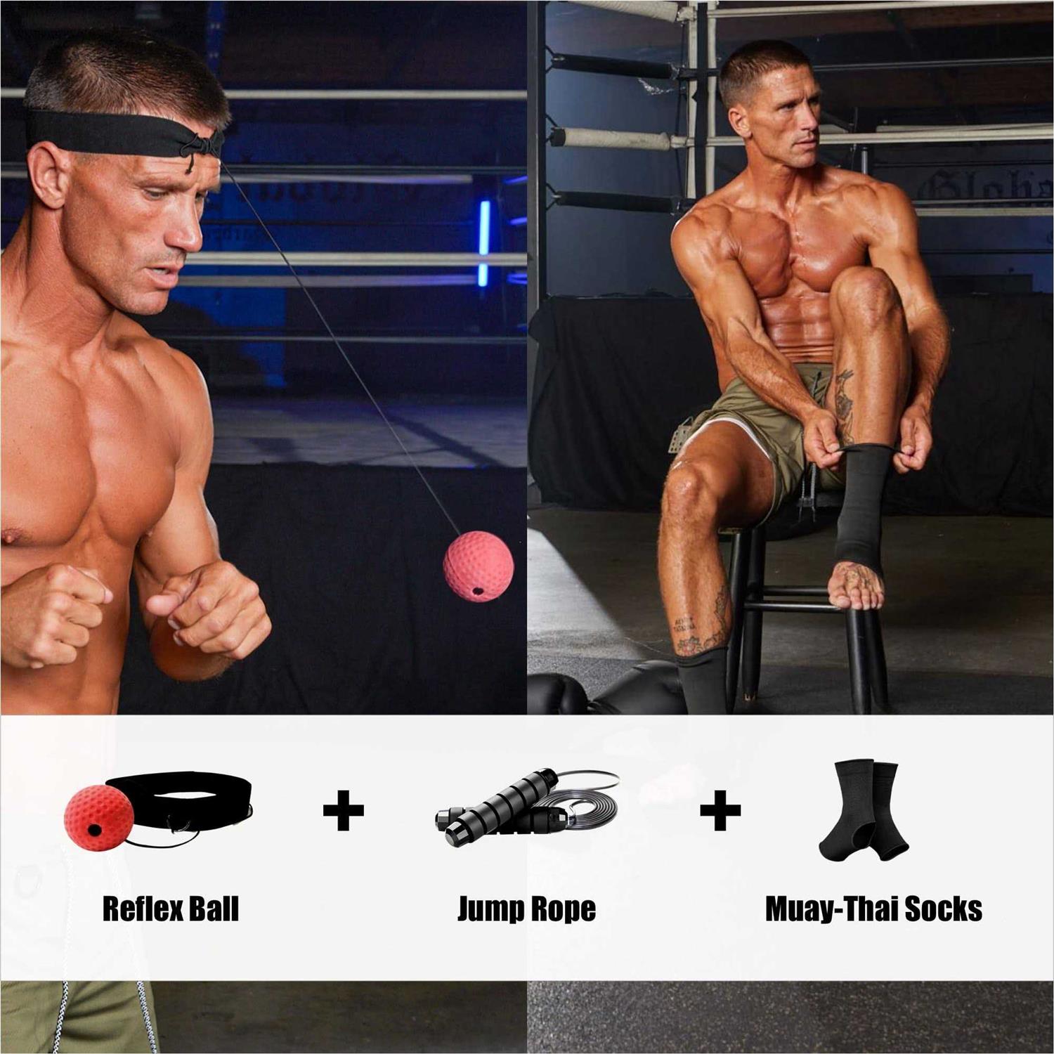 HEAVY DUTY LEATHER MUAY THAI BAG: Muay Thai punching bag for men & women is built from high-quality & long-lasting leather to ensure punching and kicking bag is strong enough to handle years of constant blows & rough handling; the reinforced stitching helps heavy kicking bag for adults retain its shape after being filled adults punching bag to full capacity; the adults punching bag can be easily cleaned with a damp cloth or wipe; this leather punching bag can absorb the impact of your strikes. MUAY THAI TRAINING KIT REFLEX BALL SET, SPEED JMUP ROPE: Muay Thai heavy bag for men comes with a muay thai training kit containing muay thai reflex ball, muay thai gloves, & mauy thai socks; muay thai equipment helps train taekwondo kicking bag, karate punching bag, jeet kune do punching bag & stabilize kickboxing heavy bag & provides a cushion when practicing leg strikes heavy kick bag; the PU boxing speed reflex ball set helps with speed & accuracy of punches with muay thai kick boxing bags. 6 FT TALL & 20″ WIDE MUAY THAI BAG: The Muay Thai punching bag is 6 ft tall & 20″ wide; compared to regular adults heavy punching bags, the Muay Thai bag is longer to make it easier to practice long-distance strikes & practice striking bag from different angles; the kickboxing punching bag, bjj punching bag, krav maga punching bag, kendo punching bag & aikido punching bag is quite long, heavy punching bag will not touch the ground if you hang it with our kick boxing bag for women and men holder. HANGING STRAPS, HOOK, & KICKBOXING BAG HOLDER INCLUDED: Muay Thai heavy bag comes with hanging straps, a hook, kickboxing bags holder; kick punching bag can be hung securely; installation hardware is included with a mounting holder for easy installation & removal of adults heavy bag boxing; hook & straps to hang the kick boxing bag adults according to your eye level or height; you can also attach the other strap or reposition the hook to another sturdy mount of adults muay thai bags. BLACK COLOR MUAY THAI BAG: Elite adults Muay Thai bag is available in a striking bag black color scheme; depending on the layout of your workout space, this muay thai training kickboxing bag equipment gear could either stand out against the bright interior or blend in with the darker walls, ceiling, or floor; if you feel hanging punching bag for men is out of place, it is easy to carry muay thai punching bag between rooms & set this muay thai bag for men and women up in another location. The Elite Muay Thai punching bag set is the ultimate kit for practicing Muay Thai kickboxing & MMA. Our Muay Thai punching bag for adults comes with additional kickboxing equipment, such as a mounting hinge, hanging punching bag straps, a patent-pending phone case, Muay Thai ankle wraps, muay thai socks, premium 12 oz Muay Thai gloves for men & women & kickboxing bag hand wraps. Additionally, this kick boxing training equipment set includes a muay thai jump rope & a kick boxing reflex ball to enhance your Muay Thai training experience. Our adults 6ft Muay Thai bag unfilled includes pre-marked upper & lower body zones, 6 feet muay thai punching bag with gloves for adults enabling you to practice a full range of strikes & other Muay Thai heavy bag with gloves techniques. Crafted from a blend of heavy-duty leather & polyester, our 20” wide Muay Thai bag with gloves for men can withstand prolonged rough use & hits. The kick punching bag’s height & material help martial artists develop precision & power in striking bag training. The inner pearl & cotton buffer in Muay Thai punching bag with gloves offers optimal impact absorption, it not only contributes to the kickboxing punching bag’s longevity but kicking bag also gives your hands comfort. The muay thai hand wraps & 12 oz muay thai gloves for men provided with MMA punching bag for men help protect against discomfort. With thick foam padding & anti-wear material, kick boxing bag gloves for men offer a secure fit. The kick boxing heavy bag muay thai gloves for women & men strike a balance in size & weight, making muay thai bag ideal for Muay Thai training. The muay thai hand wraps for men offer support, stabilizing your wrists & knuckles. This kick boxing punching and kicking bag for adults set includes Muay Thai ankle wraps, muay thai socks that offer ankle support during intense muay thai kick bag training sessions, also used as taekwondo kicking bag, karate punching bag, jeet kune do punching bag, bjj punching bag, krav maga punching bag, kendo punching bag & aikido punching bag. To enhance your hand-eye coordination, Muay Thai heavy punching bag for adults includes a reflex ball and a muay thai jump rope. You can use these tools to create different Muay Thai boxing heavy punching bag drills and kickboxing bags workouts. This 6 foot leather Muay Thai punching bag for men is easy to install using sturdy steel kick boxing heavy bag chains, swivel, carabiner, and muay thai heavy punching bags for men hook hangers with bolts.