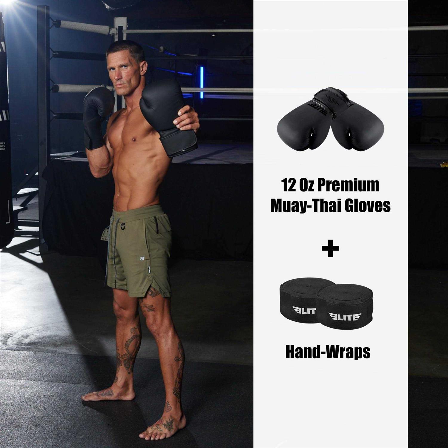EliteSports 6 ft Muay Thai Punching Bag for Adults Leather Kickboxing Heavy Kick Bag Hand Wraps