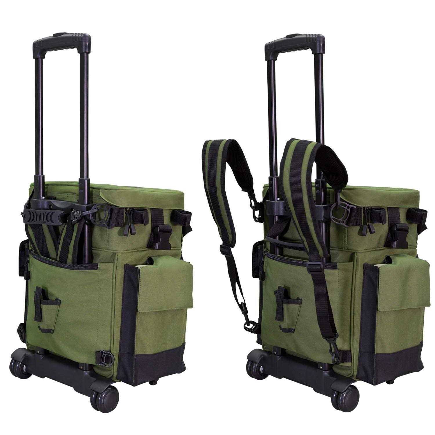 - EASY TRANSPORTATION: Extend the handle to use as a rolling tackle box, retract the handle and use the shoulder strap to carry it.