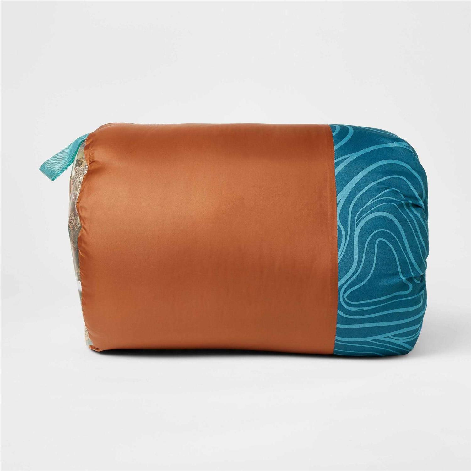 Stay warm and cozy while camping even in chilly weather with this 30-Degree Sleeping Bag from Embark . Rated for temperatures as low as 30 degrees Fahrenheit, this orange sleeping bag with a blue patterned interior fits adults up to six feet, ten inches tall. Equipped with a two-way zipper to keep you nice and snug, it comes with built-in compression straps and a stuff sack to help you maximize packing space. Embark : Find wonder as you wander.