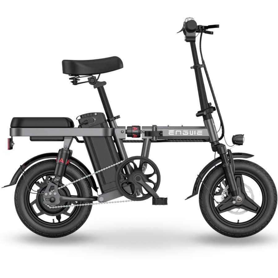 The T14 Folding Electric Bike from ENGWE is a folding electric bike designed for use by adults and teens who enjoy an active lifestyle. This beautiful bike features 14 inch fat tires that provide superior stability and are perfectly designed for traveling in urban areas. This bike is designed with the commuter in mind and can travel up to 19.2 MPH. Featuring a removable lithium battery and 4 shock absorption settings this bike is designed for you to ride comfortably no matter where you’re headed! The T14 is suitable for adults and teens with heights ranging from 5 to 6 feet and has a maximum load capacity of 220 lbs. The stable triangular force structure will make your ride more stable and safer even when riding over challenging terrain.