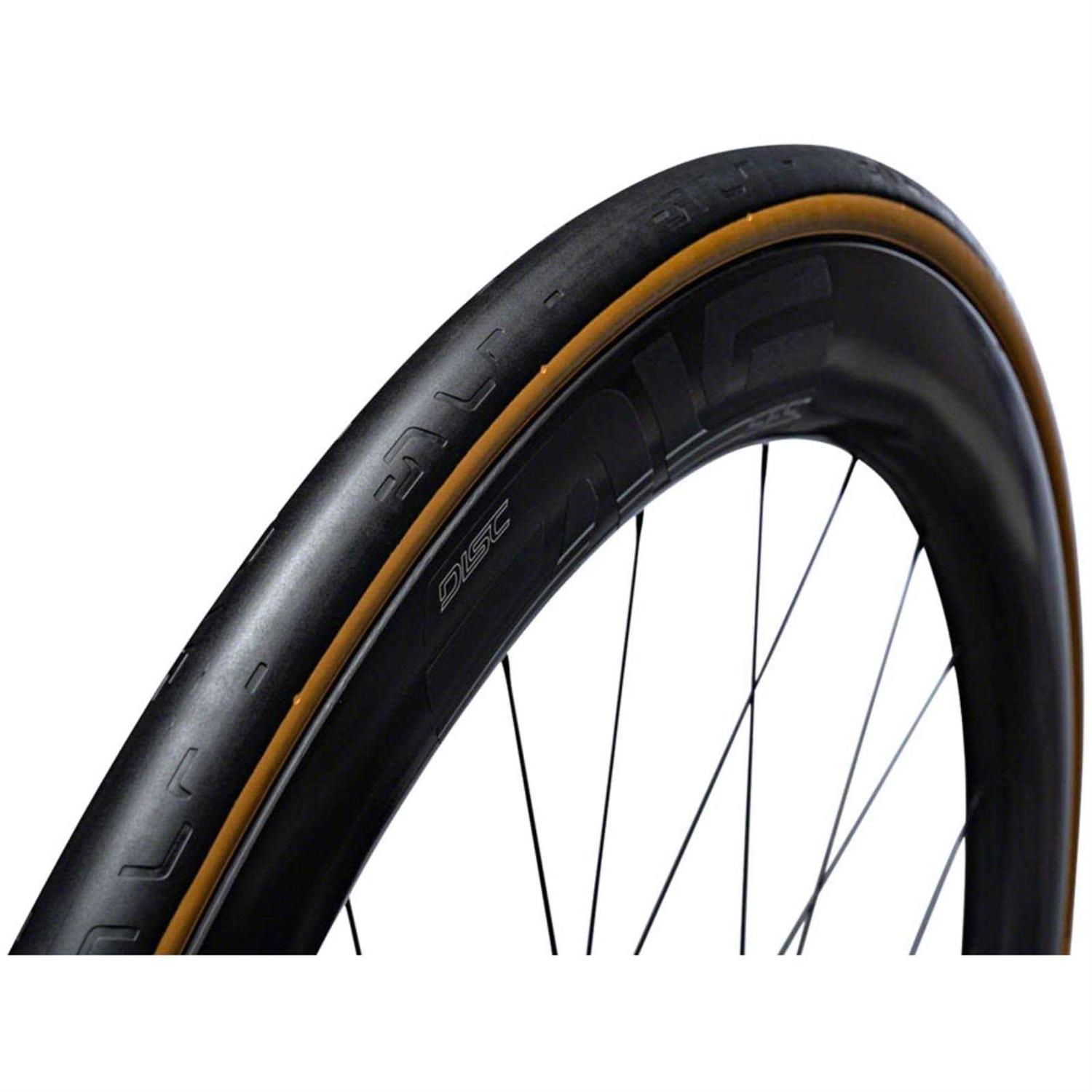 Anyone who thinks road bike tires can’t be sexy needs to have a good look at the ENVE SES Tubeless Road Tire with tan sidewalls. In a 25mm width for 700c wheels, these will be perfect race day tires especially if you are rolling with an ENVE SES or Foundation wheelset. The ENVE SES tires have been in development for the better part of a decade and find the tire shape and construction choices can make a huge impact not only on rolling resistance, but also on aerodynamics. The designers have been careful to make certain that the durability and puncture resistance of the tire remain high without compromising on weight. So they have turned to Vectran protection which is the most effective high-performance, anti-flat protection available. And since these are designed to be tubeless, the bead has a level of stiffness that will ensure secure sealing between rim and tire. The tread compound is balanced for low-rolling resistance and longevity, so you can count on these being excellent race day tires as well as reliable for thousands of miles worth of training.