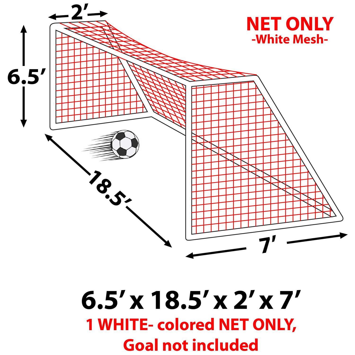 3mm Soccer Goal Nets – White – 6.5 x 18.5 X2 X7 – Polyethylene, 3mm Twisted Rope, 5″ Mesh, Epic