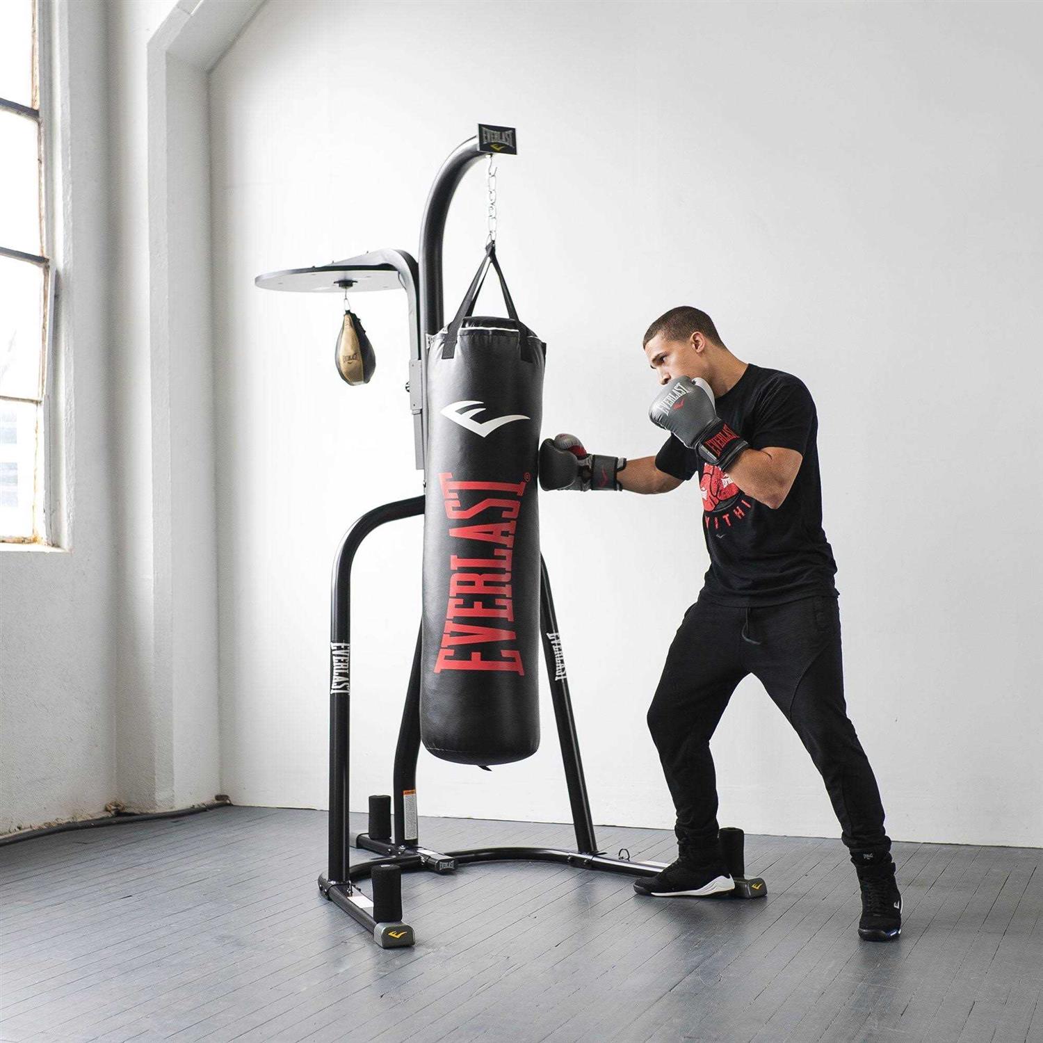 Everlast Dual Station Bag Stand and Nevatear 70 Pound Hanging Heavy Punching Bag