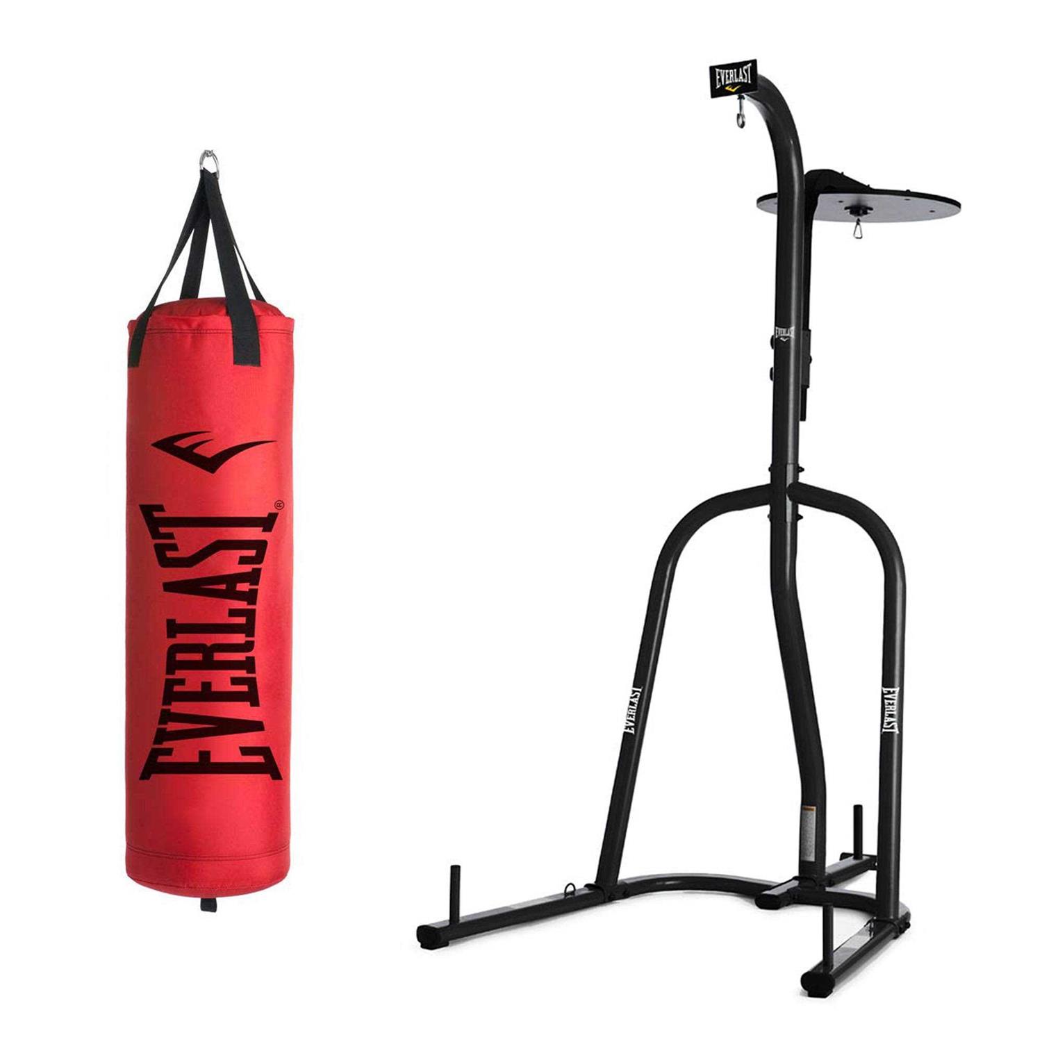 Everlast Dual Station Bag Stand and Nevatear 80 Pound Hanging Punching Bag, Red