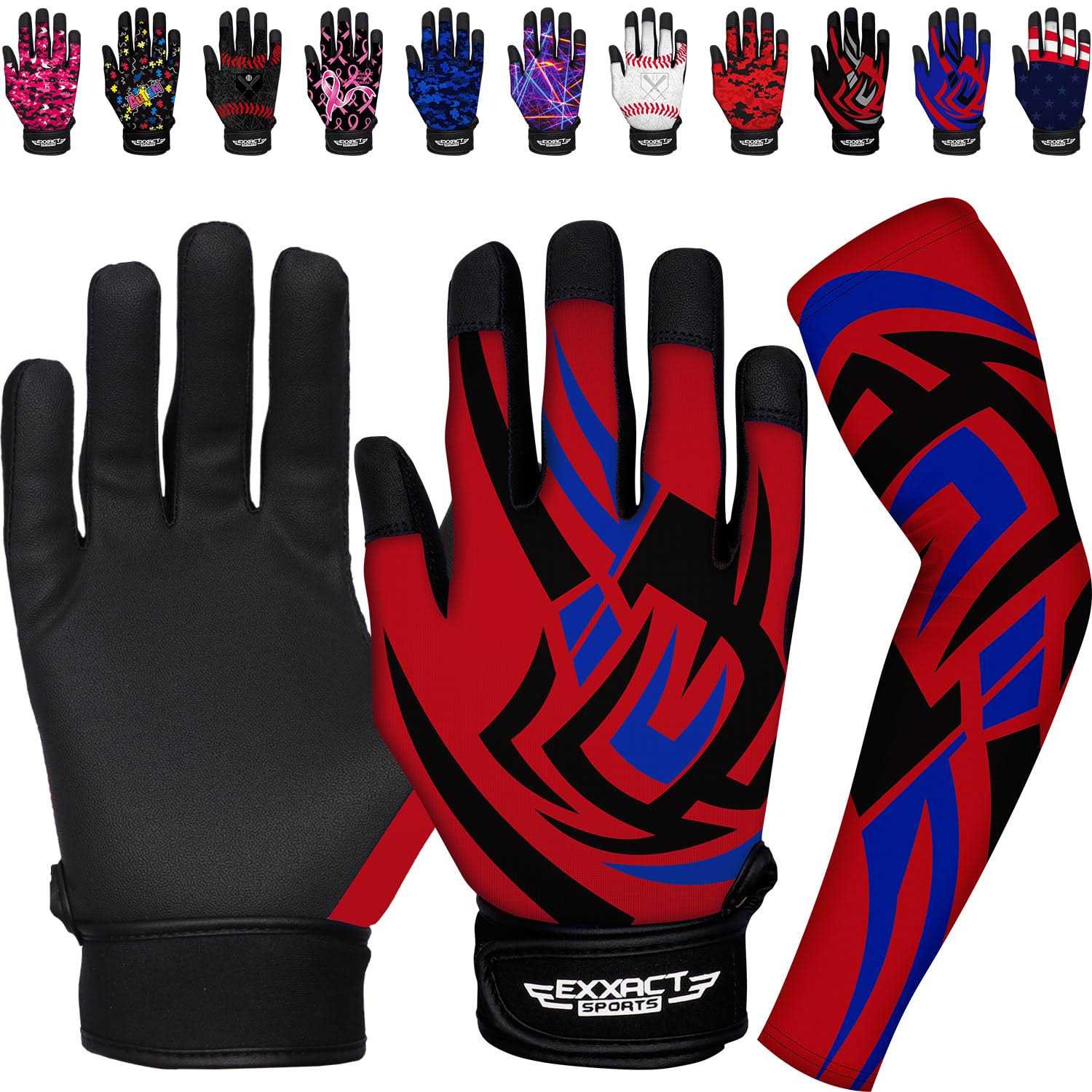Exxact Sports Youth Batting Gloves with Arm Sleeve – Baseball Batting Gloves Youth Boys, Softball Batting Gloves for Women