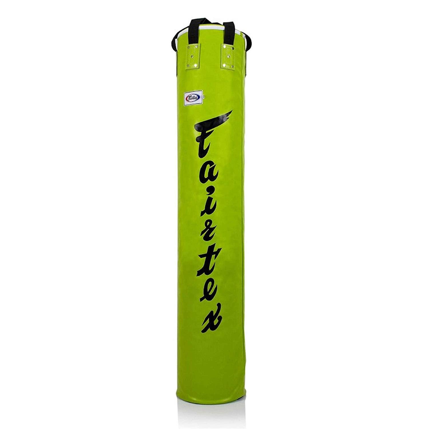 Fairtex Hb6 Muay Thai 6Ft Banana Bag Unfilled Green The famous Fairtex Banana Bag is designed to give you a full contact, total body workout Dimension: 36 cm dia. x 180 cm Handmade in Thailand. Durable synthetic leather construction. Approximately 120 lb when filled. All Heavy Bags are sold Unfilled as they come from the factory.