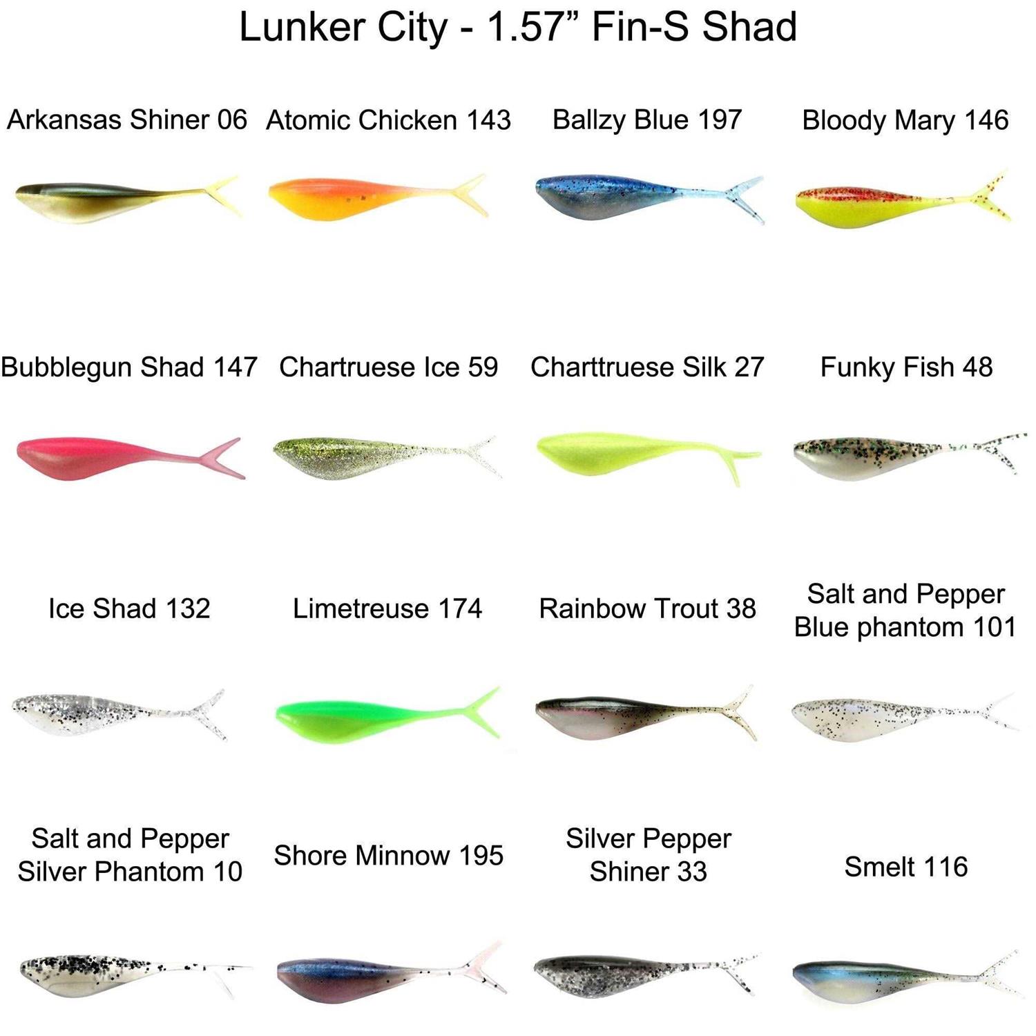 - Lunker City Fin-S Shad combines a thick body Shad profile with a thinner more active fork tail section creating a very natural appearance.