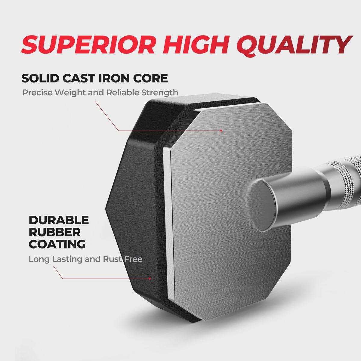 Solid-Cast Hex Dumbbell Hand Weights from 10-50 Lbs. – encased in durable rubber, this weights dumbbells set will last for years of workouts while also protecting your floors from damage. Handles Designed for Comfortable Grip – contoured chrome handles make the perfect weights set for home gym, or weights for women at home. Perfect Dumbbell and Free Weight Workouts – Strengthen deltoids, abs, biceps, and triceps. Use 10 lb dumbbells for lower intensity, higher reps. Use Heavier weights for fewer reps. Hexagon Shape Prevents Rolling – Keep 10 pound weights to 50 pound weights from hitting the floor and rolling. Weight set allows for easy stacking of dumbbells on top of one another. Backed by Finer Form – a leader in at-home fitness equipment.