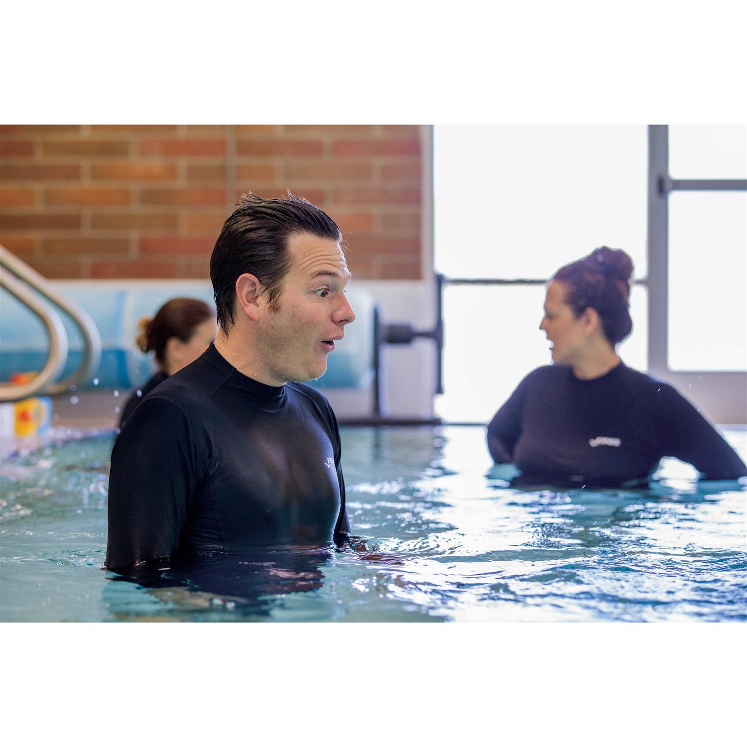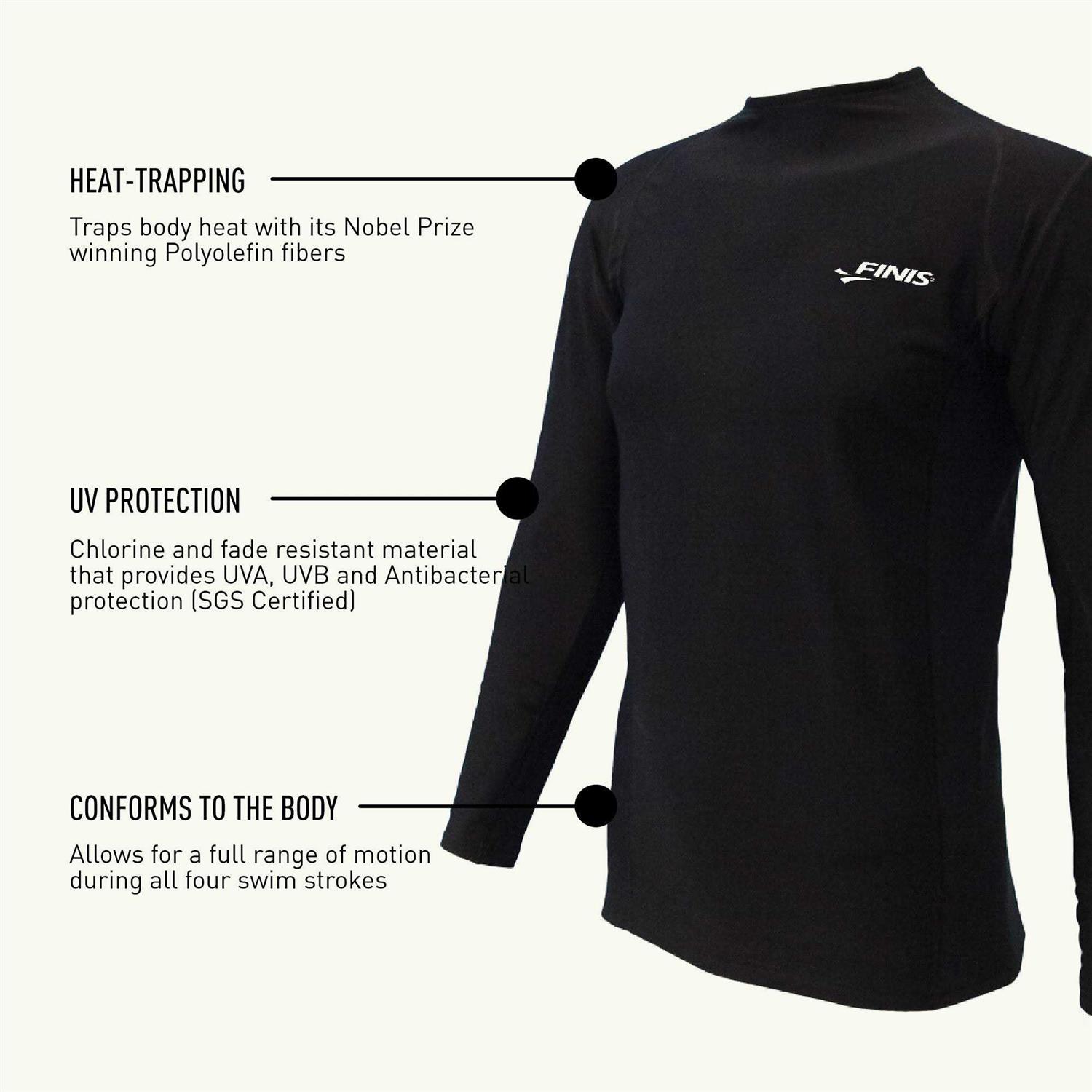 Provides warmth to swimmers by trapping body heat with its unique BiPoly fabric. Conforms to the body and allows for a full range of motion during all four swim strokes. 1.05.048.06 Wear this shirt repeatedly to build strength and endurance in the water. Chlorine/fade resistant and machine washable. Provides UVA, UVB and Antibacterial protection (SGS Certified). The Thermal Swim Shirt provides warmth to swimmers by trapping body heat with its unique BiPoly fabric. Made from a strong, yet lightweight material, the Thermal Swim Shirt conforms to a swimmer’s upper body without restricting range of motion.