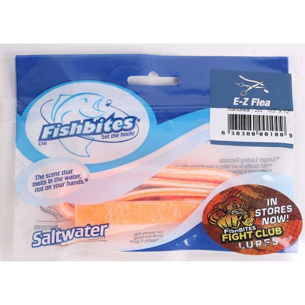 Fishbites E-Z Sandflea – Long Lasting Just cut it, hook it and cast it! All you need is sharp scissors. How EZ is that? E-Z Shrimp can be used on a bare hook or as a trailer on a jig or skirt. Each bait strip is 1/2″ wide and 12″ long. Use them to catch a wide variety of saltwater species. The Longer Lasting formula features a cloth binder in the middle of the bait that keeps it on the hook despite the efforts of notoriously toothy bait stealers.