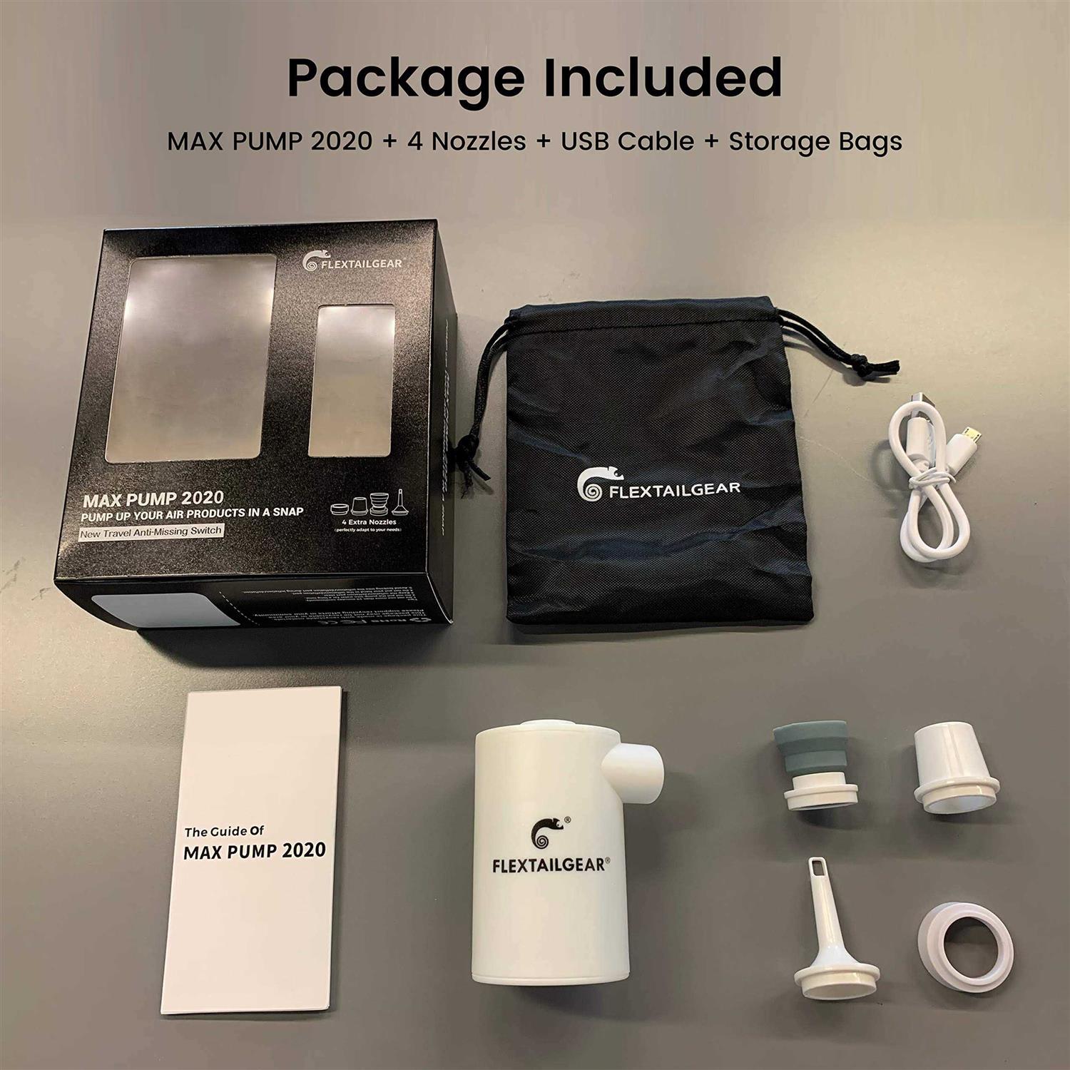 FLEXTAILgEAR MAX Pump 2020 Portable Air Pump with 3600mAH Battery USB Rechargeable Air Pump-Quick Inflate Deflate for Air Mattre