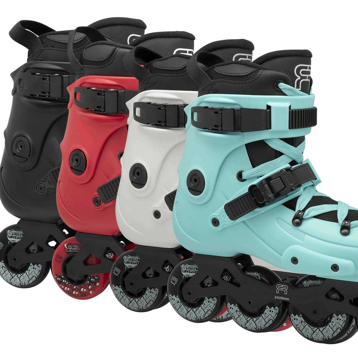 - The popular 80mm Street Invaders wheels are installed in the 243mm short aluminium frame.