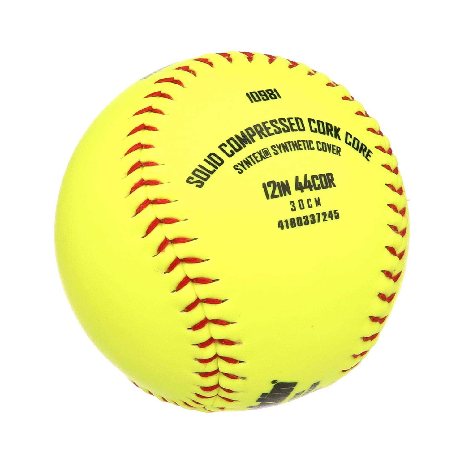 Synthetic winding. Waterproof Syntex cover on this softball. Is official size and weight and has a battable cork and rubber core.