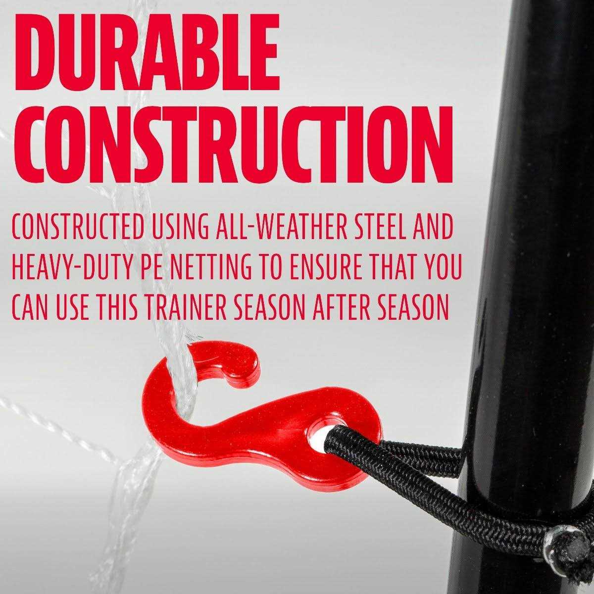 - DURABLE STEEL CONSTRUCTION: Constructed using all-weather steel and heavy-duty PE netting to ensure that you can use this trainer season after season.