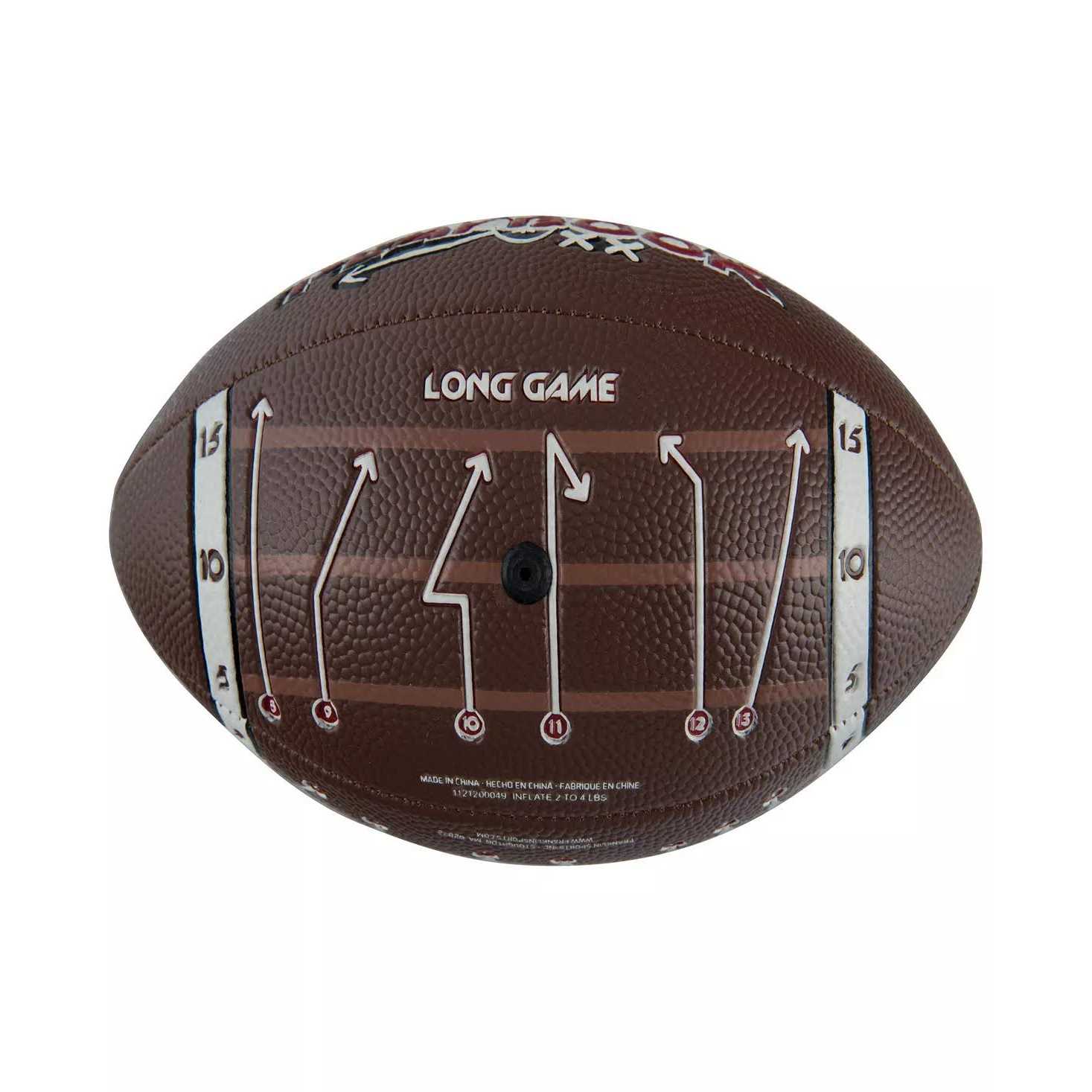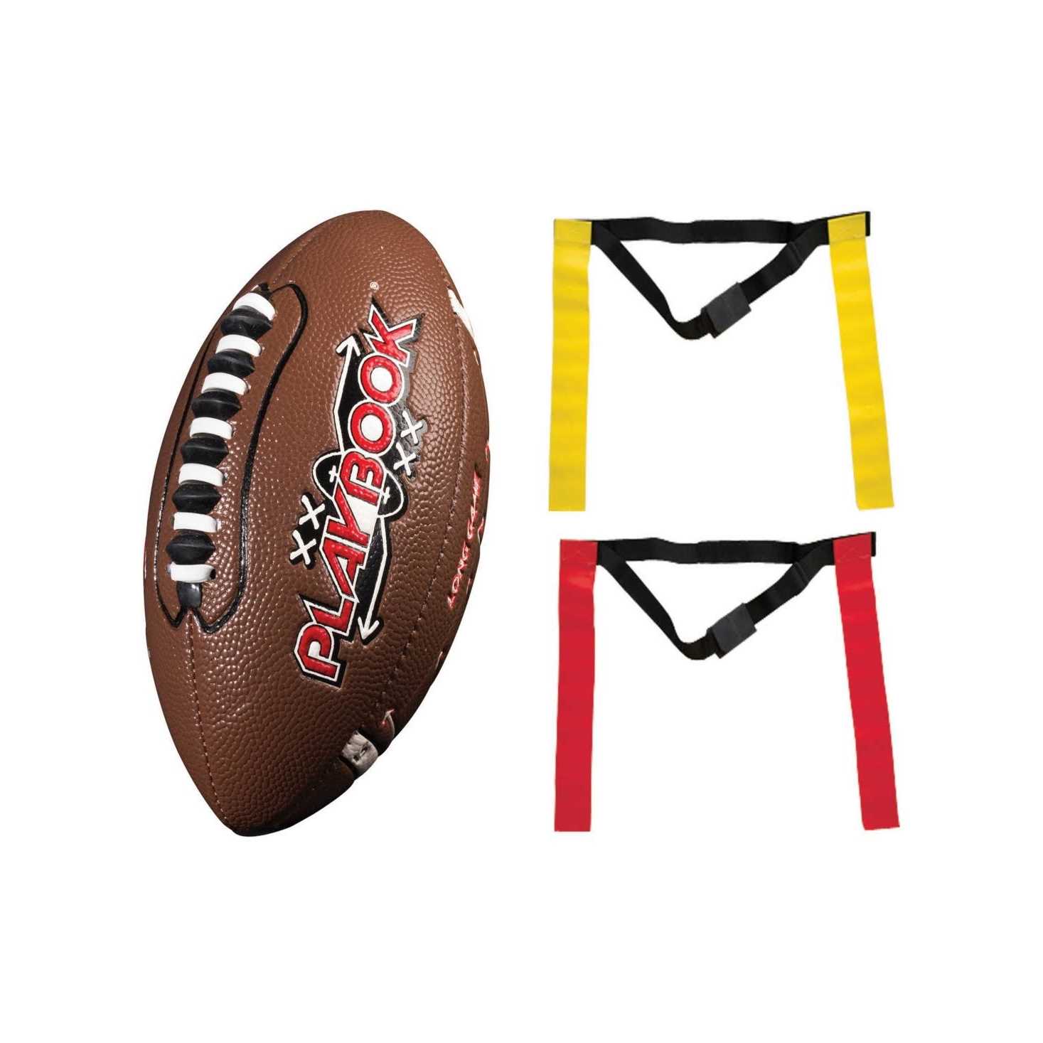 Take the ball and run! This Mini Playbook Flag Football Set is the perfect starter kit for your rising football star. The wearable flags in this set provide a safer alternative to tackling, and the mini football has a Spacelace grip that’s great for small hands. Route options for the quarterback are printed directly onto the football, including 7 short- and 6 long-distance plays that will teach kids the basic strategy of the game. The game is designed for 2 teams of 5 players, and kids will have a blast while learning the rules and teamwork of football. Includes mini Playbook football, 5 yellow flag belts, and 5 red flag belts.For ages 5 and up.