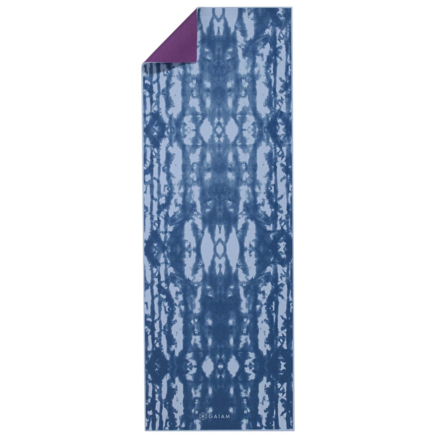 Durable and chic Gaiam’s Premium Print Reversible Yoga Mats provide a stable sticky non-slip 5/6mm cushioned surface for your yoga practice. Perfect for home or studio use this mat ensures the safety and comfort you need to enhance proper alignment and maintain poses and the additional cushioning helps to protect joints. Manufactured free of the top six most harmful phthalates this mat is a healthier choice for both you and the planet! Please note a packaging change from 5mm or 6mm but rest assured it is the same size and style mat just in new and improved packaging. Also printed yoga mats may release a harmless odor when first unwrapped. For best results unroll and air out your mat for 2-3 days before use.