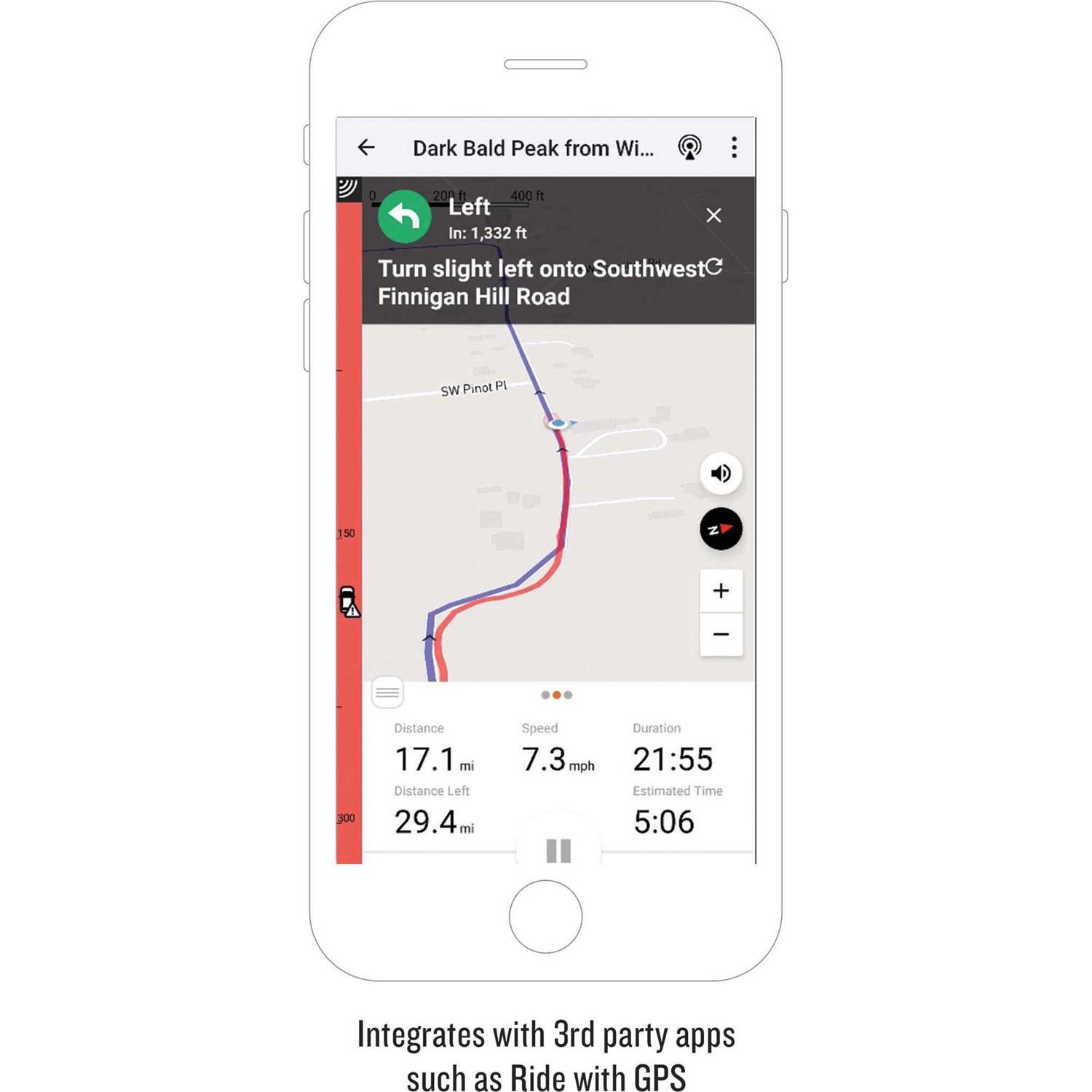 Ride safely with this Garmin rearview radar. The smart technology allows seamless pairing with your Edge bike computer, smartphone and other Garmin devices and alerts you to vehicles approaching from behind, while the taillight offers daylight visibility of up to 1 mile to let other riders spot you easily. This Garmin rearview radar has a compact design that mounts effortlessly on most road bikes. Compatible with most bikes Its compact vertical design allows easy mounting to your road bike. Works with Ride and other apps Allows overlaying your maps with rearview radar alerts. Aware of vehicles approaching from behind Offers up to 153 yds. of detection. Built-in rechargeable battery Provides up to 16 hours of cycling in the day flash mode and up to 6 hours in the solid mode without charging. Graphics, tone, and vibration alerts Help keep you safe from incidents. Daylight visibility up to 1 mile You will be seen as soon as possible. Peloton mode Provides a low-intensity light flash that is perfect for cycling in groups.