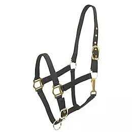 Gatsby Adjustable Nylon Halter With Snap is classically designed with an adjustable single buckle crown, brass-plated grommets, snap on the side, double-ply nylon, adjustable chin strap and brass-plated hardware. This halter is great for any horse person, whether you are an occasional rider, everyday rider or even just like to have a horse as a companion.