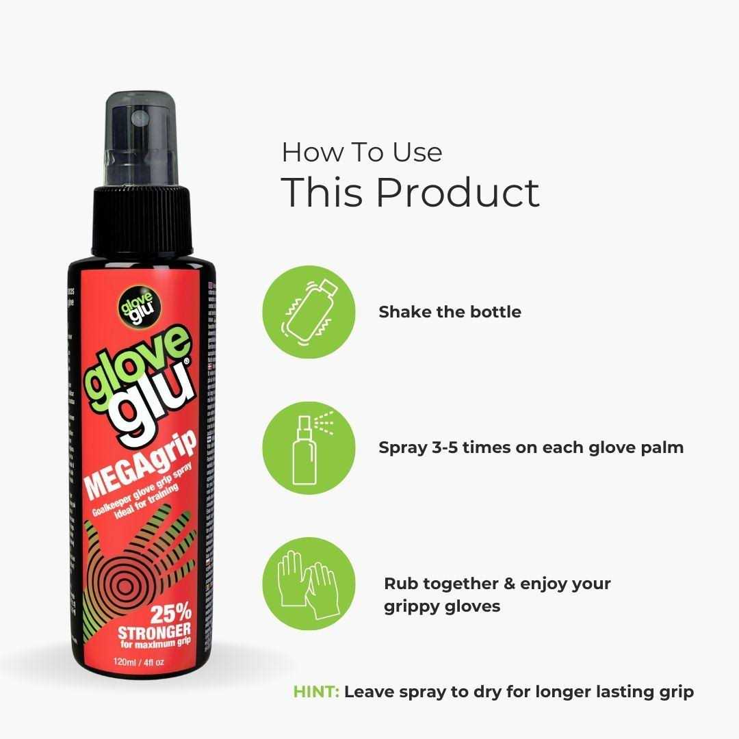 Enhance your glove’s grip in all conditions with one quick spray of this limited edition spray. Gloveglu works on all brands of gloves. It can be easily applied before and during training and matches simply by spraying onto the palms of your gloves. Gloveglu is effective in both wet and dry conditions and enhances the grip of any goalkeeper gloves thanks to it’s unique formula. New Limited Edition MEGAgrip formula is 25% stronger for a maximum grip revival. 120 mL.
