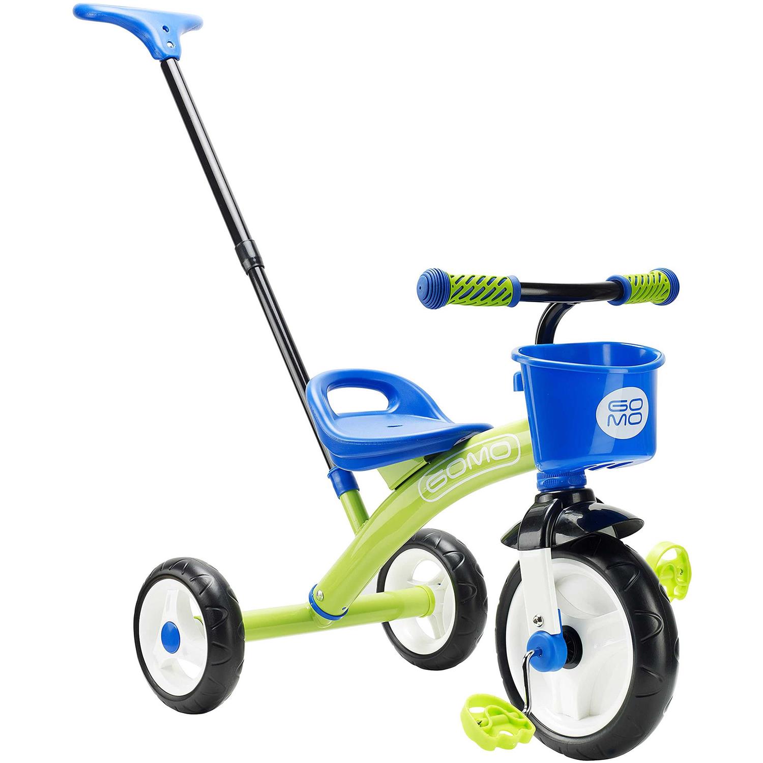 GOMO Kids Tricycles for 2 Year Olds, 3 Year Olds & Kids 1-6, Big Wheels Baby Bike Toddler Bikes – Trikes for Toddlers with Push Handle (Green/Blue)