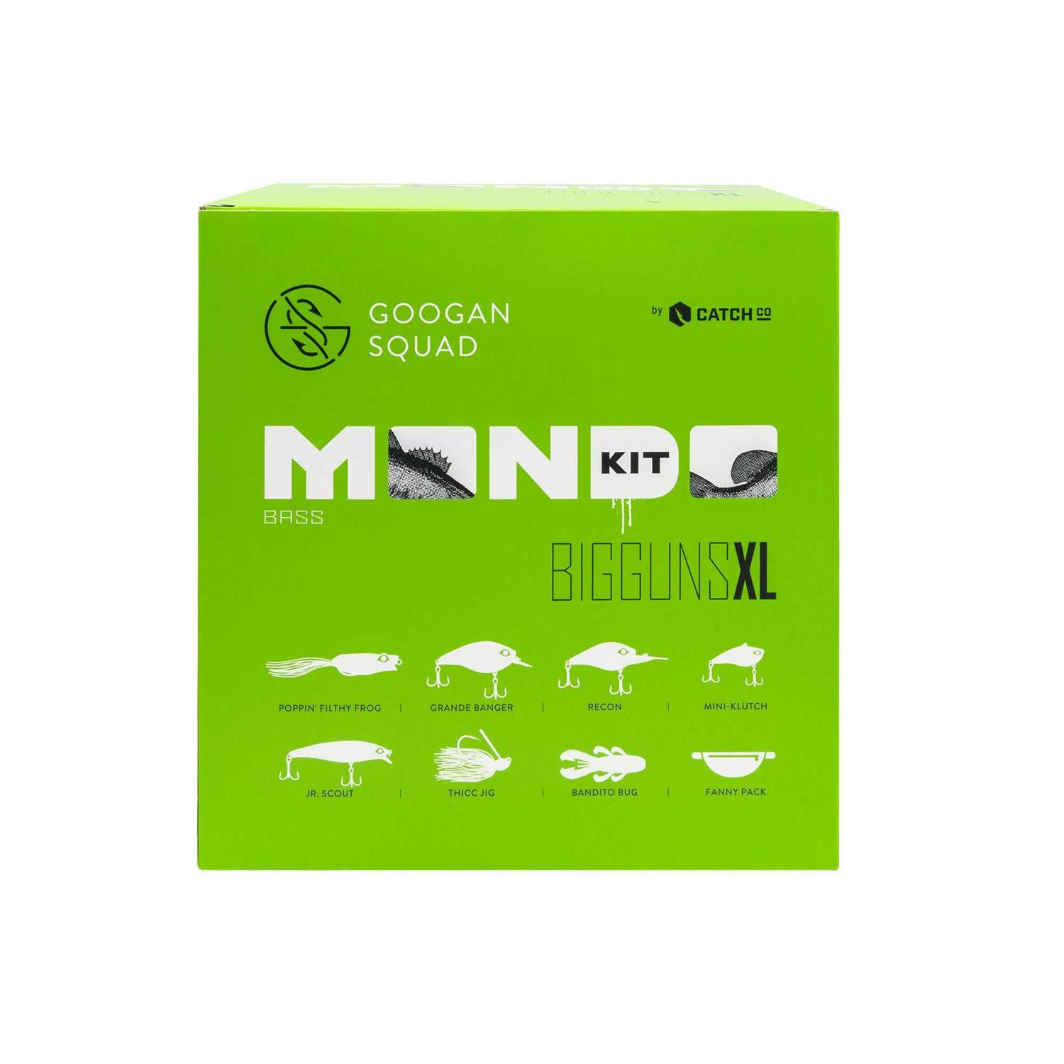 Closeout. The next time you head to the lake, make sure you bring along this GOOGAN SQUAD Bigguns XL bass fishing mondo kit. It includes six different flies, a nine-pack of googan baits and a waist pack to carry them all.