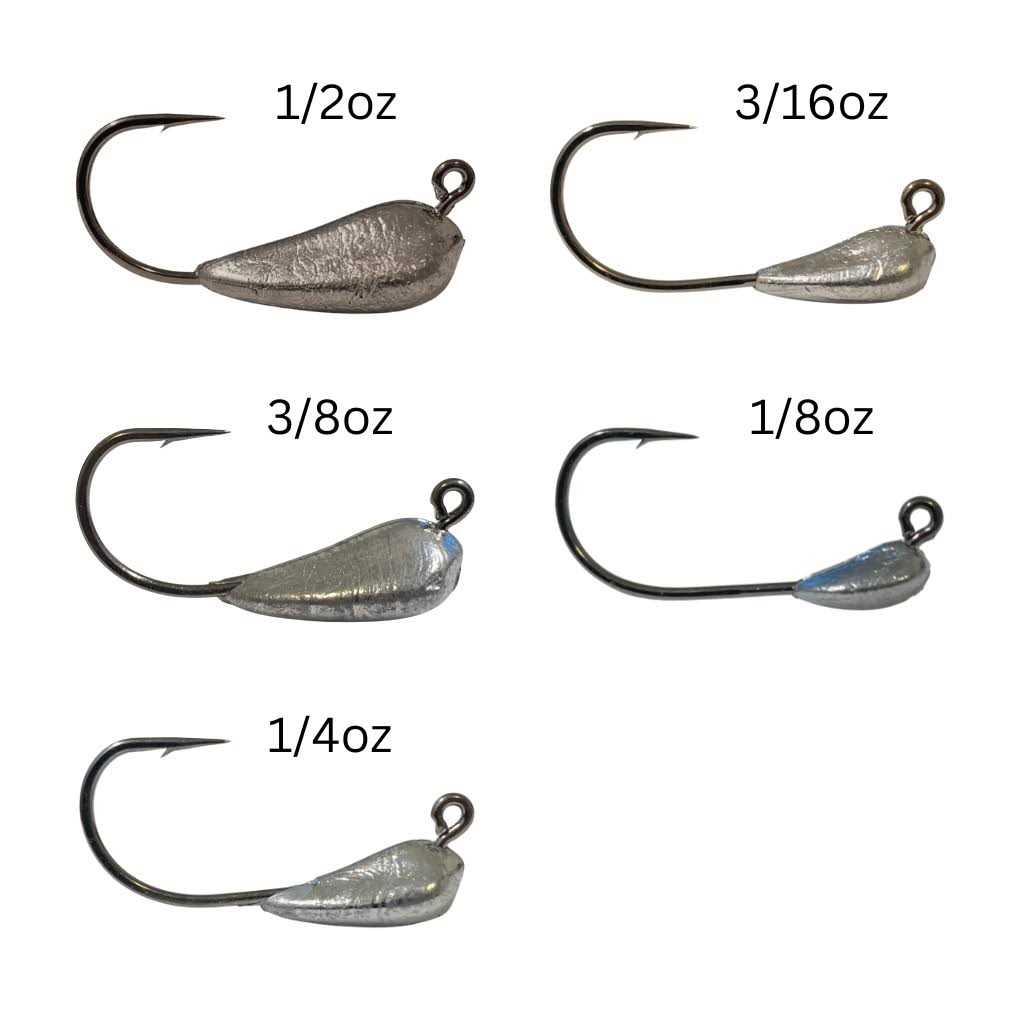 A more “finesse” sized jighead equipped with a high-quality hook for the biggest lakeand river dwellers out there, the Great Lakes Finesse Mini Pro Tube Jighead is well suited for tubes in the 1.75in to 2.75in varieties. Its shorter Mustad UltraPoint hook shank reduces the distance of the eyelet and hook bend, keeping a more compact length to fit tubes more appropriately. A more weight forward design snags less and keeps the hook orientated perfectly on the fall and on the bottom for a striking fish. Its shorter shank Mustad UltraPoint is heavier gauge then other tube head jigs in its category, with mitigated chances of “shake offs” due to its shorter proportions. For the angler looking for that hard to find quality option for their more finesse sized tubes, the Mini Pro Tube Jighead from Great Lakes Finesse fills the demand.