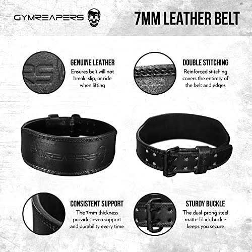 Gymreapers Weight Lifting Belt – 7mm Heavy Duty Pro Leather Belt with Adjustable Buckle – Stabilizing Lower Back Support