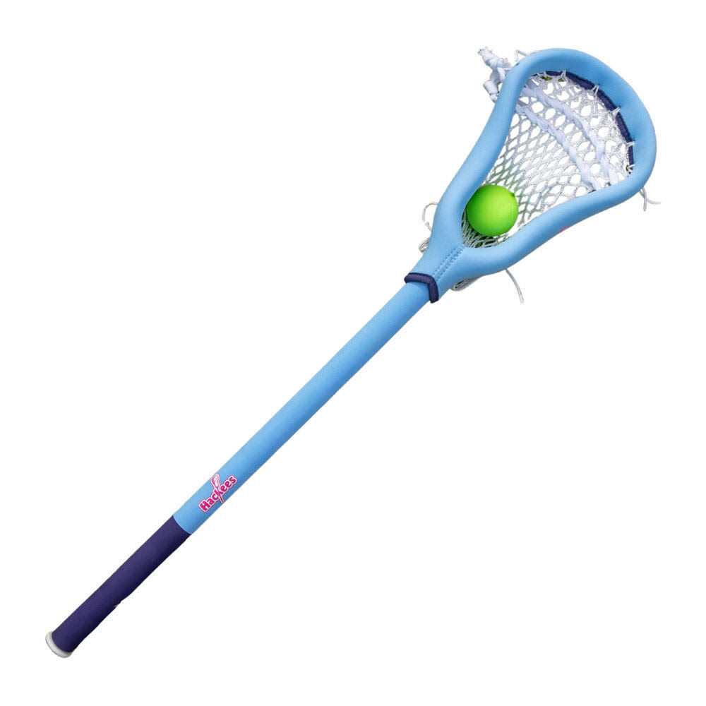 The Hackees Lacrosse Stick is the perfect stick for younger laxers looking to improve their game and just have fun! Hackees have padding around a universal lacrosse head. With the padding around the stick, this allows for players to throw light checks without having to wear all the equipment. Grab your friends and bring your Hackees Lacrosse Stick down to the beach, backyard or field. These sticks allow you to play anywhere, work on your game, and not worry about getting whacked by a regular stick. Our Pros love using the Hackees lacrosse sticks to play mini games and keep up some friendly competition going! Premium Padded Junior Sticks // Universal lacrosse head underneath a padded protective exterior Team-Play Ready // Each stick comes with a ball, so you’re ready to play. Have fun, improve dodging, footwork, physical play, ball control, passing, shooting and body positioning in a just-for-fun environment Not Another “Mini” Stick // Hackees are somewhere in between a mini stick and a competion stick, giving kids a better “game feel” when playing around in the yard.