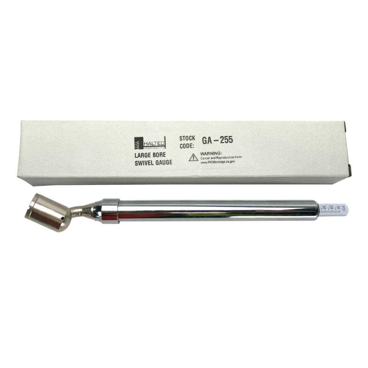 - One Haltec GA-255 large bore 360 degree swivel foot air gauge.