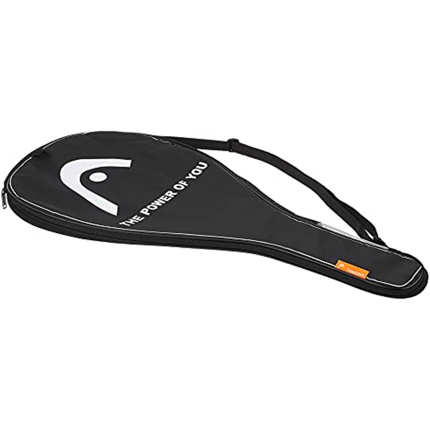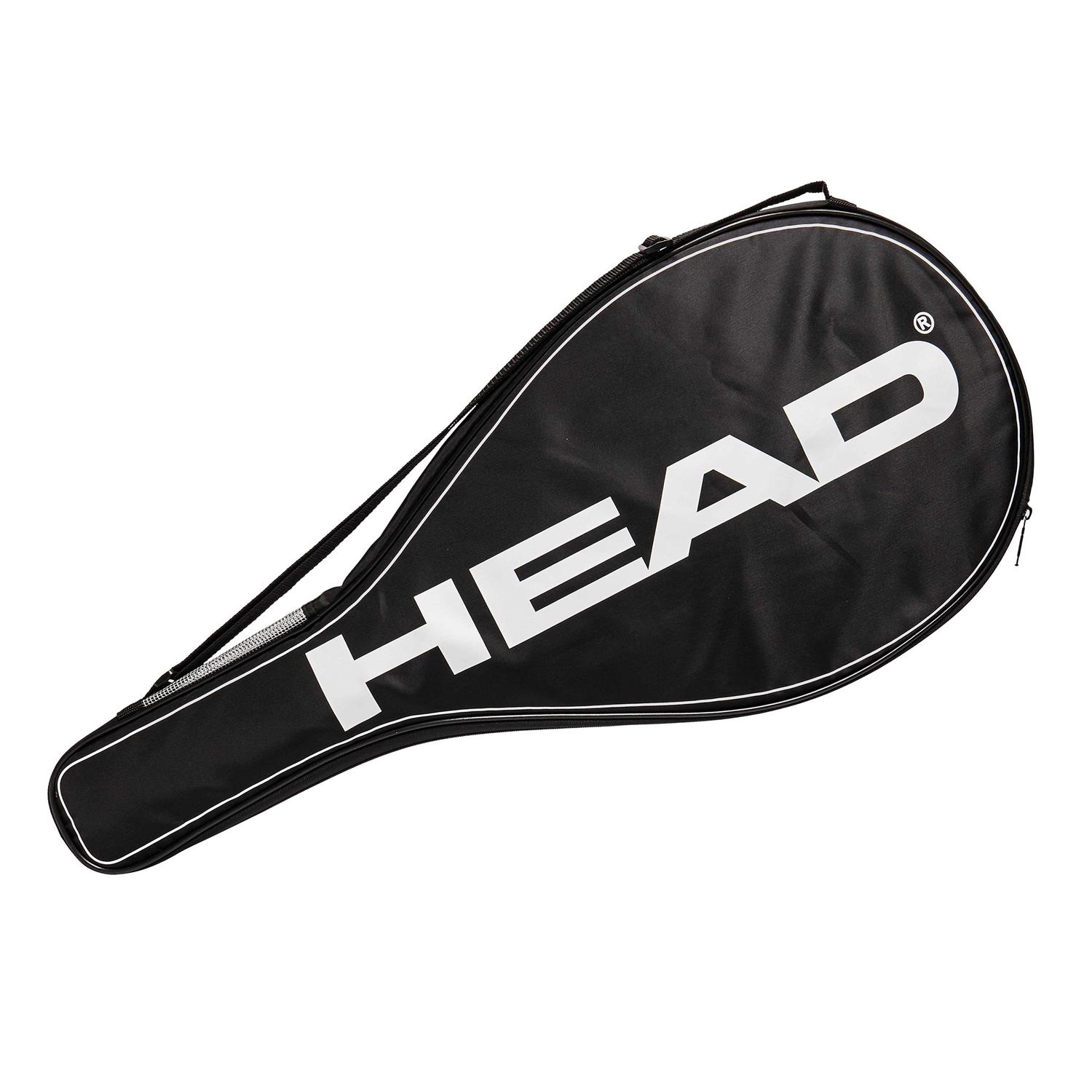 The Head full size tennis racket cover has been padded on the sides to ensure top protection of the whole racket from damages that can occur when the racket is being stored or transported. It has a carry strap to enable comfortable transportation and a full zip side that provides easy access to the racket. This stylish black racket cover features the white Head logo printed on one side and white Head lettering printed down the other side. Racket Bags.