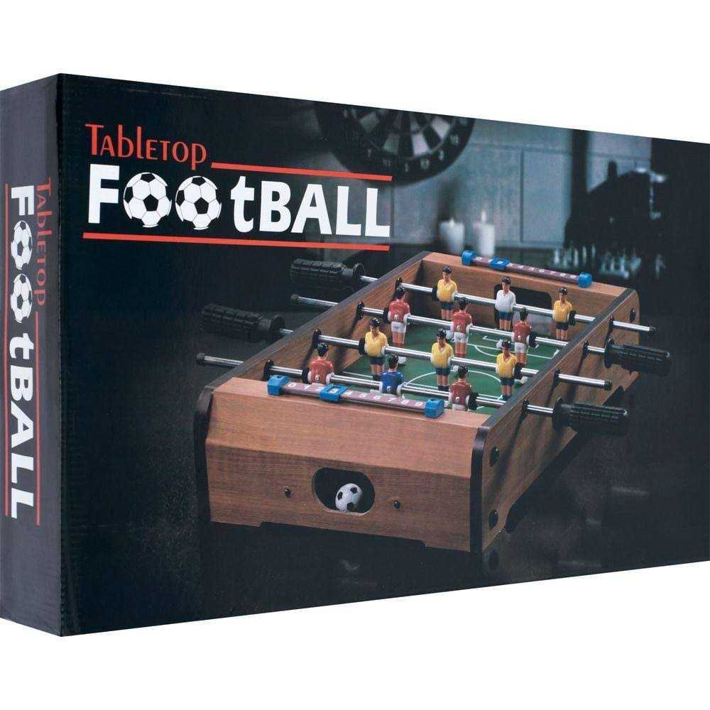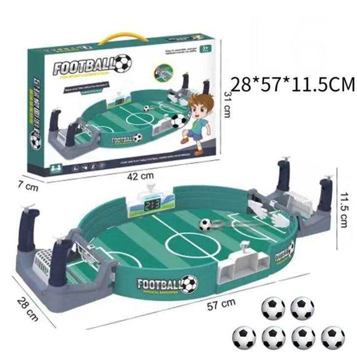 Turn almost any tabletop into a playing field Compact and lightweight for easy movement and storage. Field contains 4 rows of players. Each team receives 2 rows, and each row contains 3 players. Includes 2 soccer balls, a score keeper and an easy ball return. Contains all of the tools and hardware needed to put the game together, including an Allen wrench.