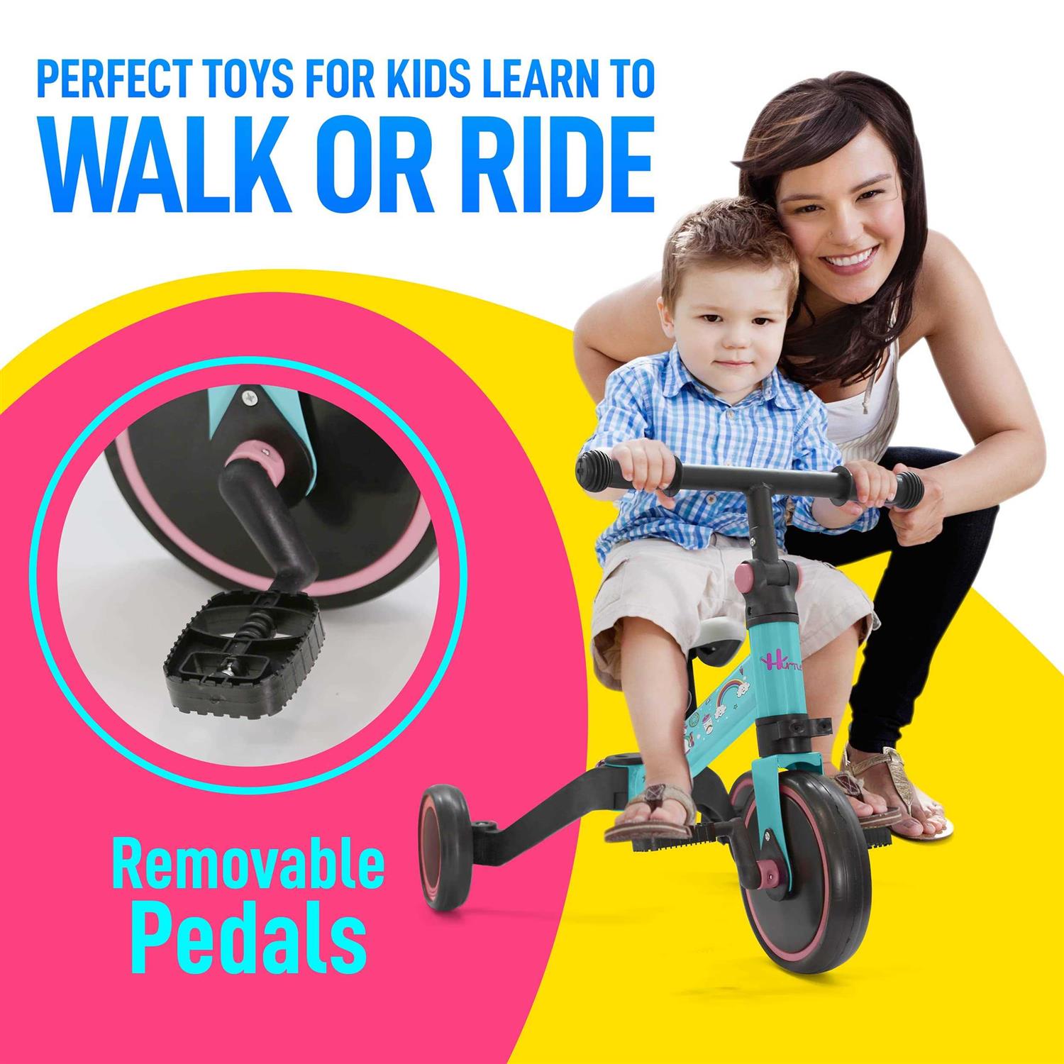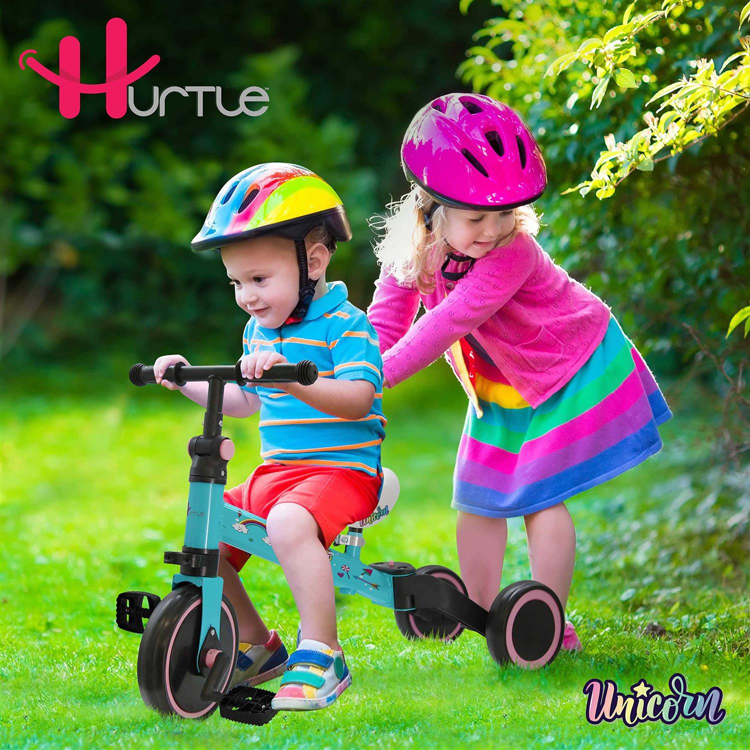 Hurtle Fitness 3 in 1 Kid Tricycles/Toddler Bike Cute Toddler Bike for 10-36 Months Kids w/ Adjustable Seat Height and Removable Pedals