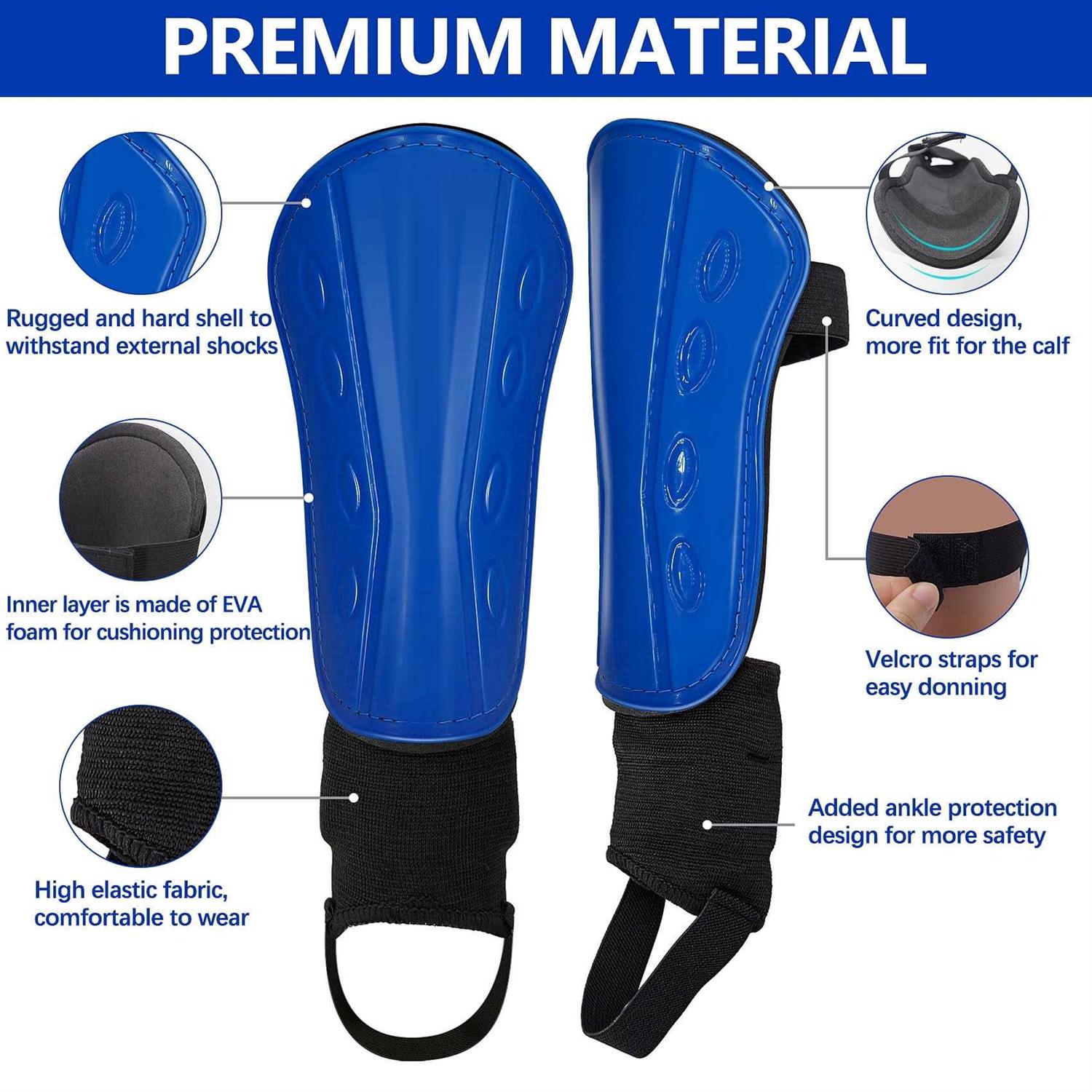 Sports Protection Essentials The Huryfox shin guards are designed for kids and teens to fit the curvature of the calf perfectly; at the same time, the design of ankle protection is added to provide perfect protection for the calf and ankle. The sturdy and thick shell can withstand 90% of external shocks. More professional, safer, and more assured. The outer layer of our soccer shin guards is made of hard pp material, with solid capability for shock absorption and cushioning. The inner layer adopts 5MM thickened EVA sponge, which is flexible and has a certain elasticity, making it more comfortable to wear.