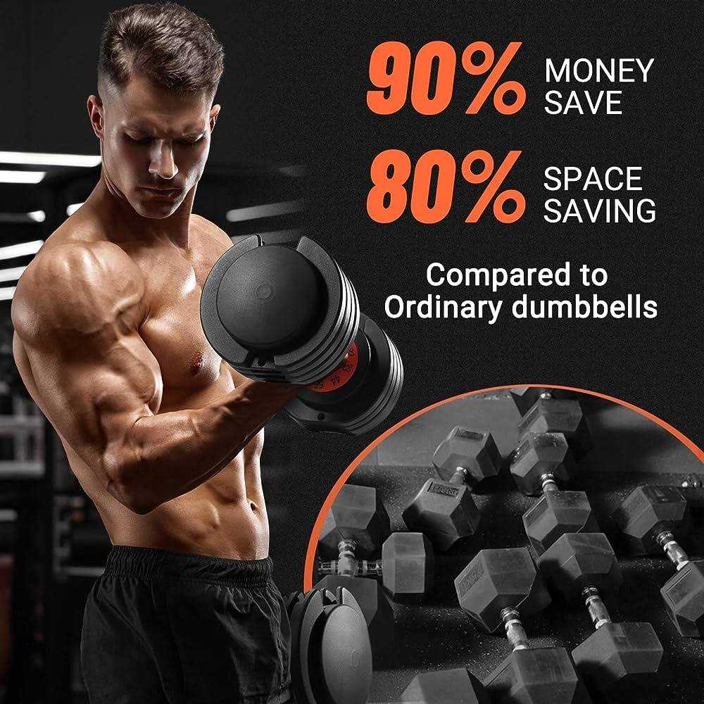 It caters various exercises easily and flexibly. With a compact tray system you only need 1-set of dumbbell space you can have 5-sets of dumbbell training experience with 80% space saving. Easy to Adjust One-handed operation design convenient for fast-changing dumbbells’ weight during training. It takes as short as 3 seconds to change the weight of an adjustable dumbbell. The visual weight dial and quick-lock handle design allows you to move between different weight needs easily and intuitively so you can focus on your actual training. Super High Quality These adjustable dumbbells made from solid and rust-free material have long-lasting protection. The dumbbell’s tray is made of PP material fits the dumbbell without shaking is stable and odorless. Durable handles combine with aluminum alloy material and anti-slip texture which would not rust and provide more safety. Home Weight Lifting Perfect for your home gym. Up your home fitness game with home gym workout weights that shape and tone your muscles and improve your core fitness. Its great for everyone be it professional or beginner fitness enthusiasts owing to ease of use while modifying muscle lines or building strong muscle fibers. Order today and start your fitness!
