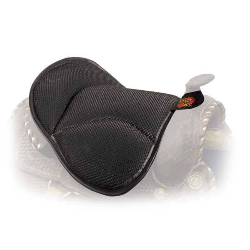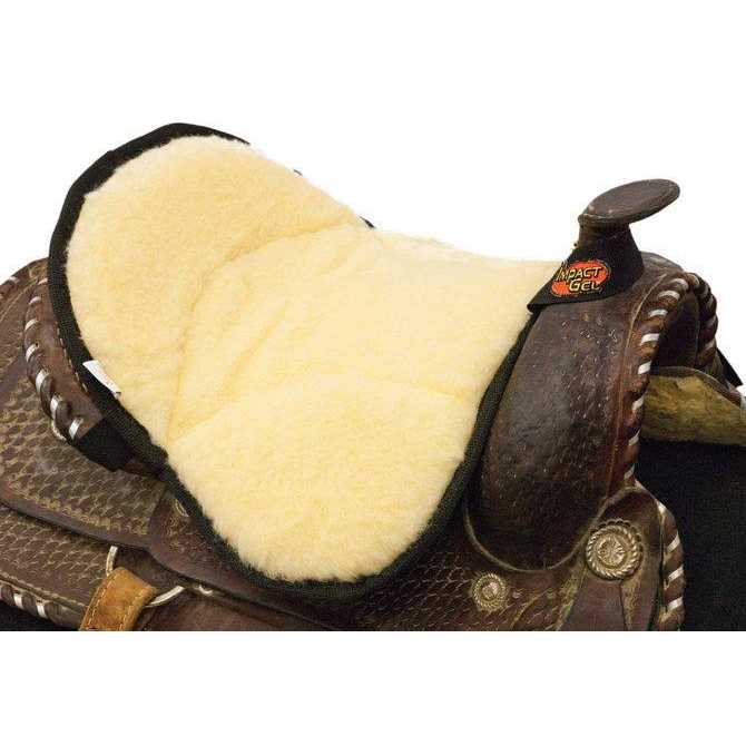 The Impact Gel western seat saver combines a nonslip bottom, impact gel layer, memory foam, an elastic band and an adjustable strap for secure placement. The top of the pad features 100% wool fleece or breathable black air mesh. The gel seat saver absorbs shock and evenly distributes weight from the saddle to the rider.