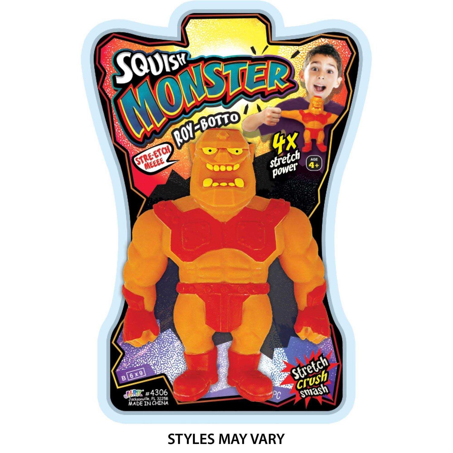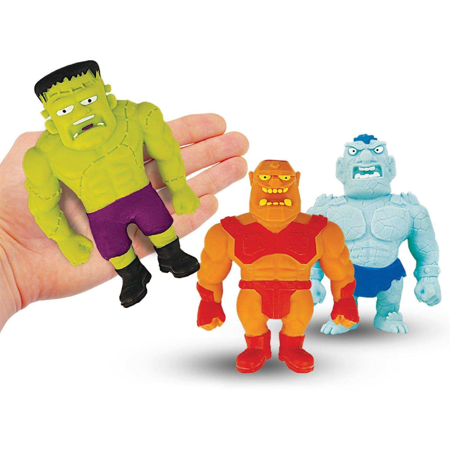 Stretch Monsters can be stretched, crushed, and smashed! They’re available in 3 styles—Gre-gory, Roy-botto, and Ice-aac—and feature a muscular physique, a vibrant color, and a snarling mouth. Each monster is made from a soft stretchy plastic that’s filled with a sand-like material. Stretch the limits of their arms, legs, and head!