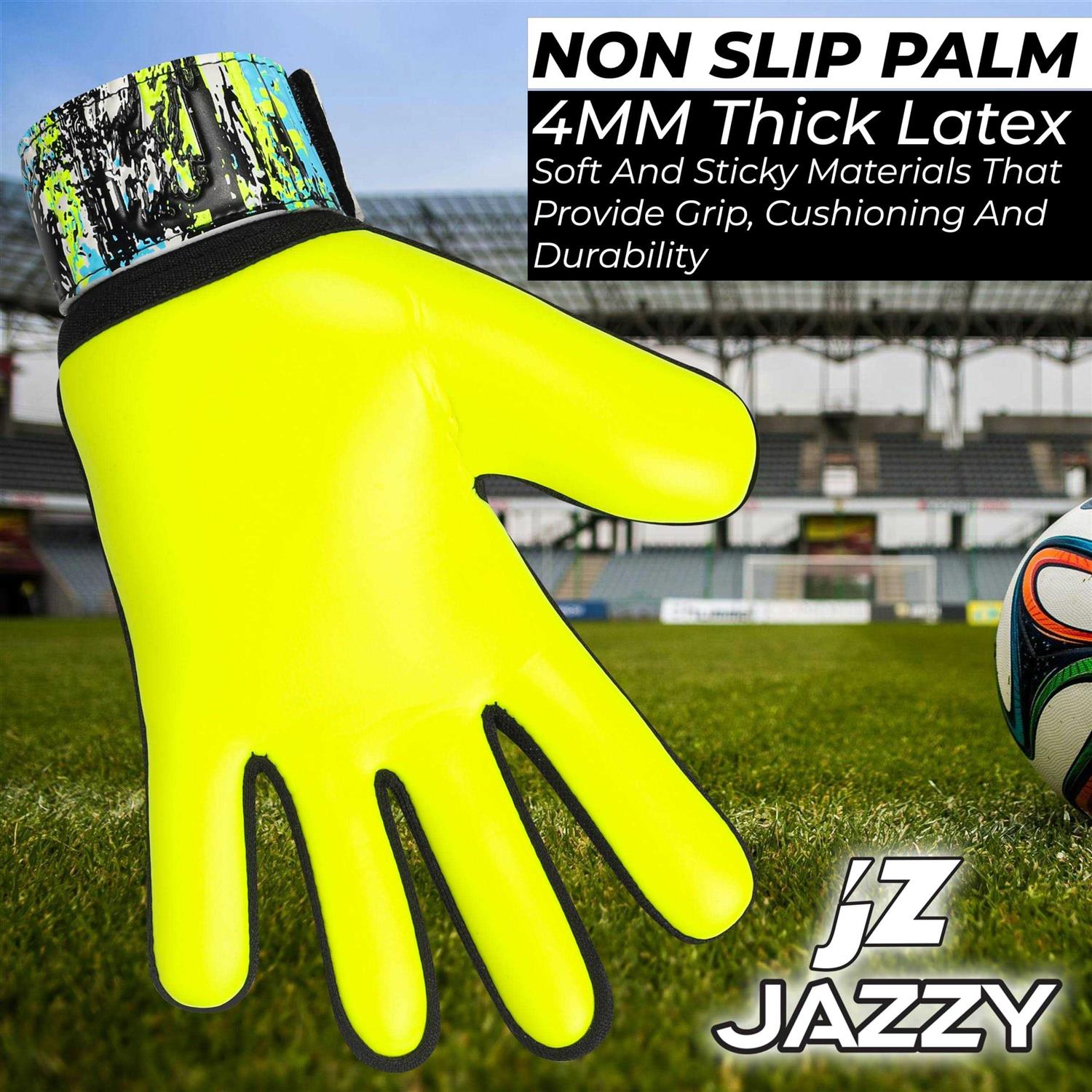 Jazzy Sports Soccer Goalkeeper Gloves for Kids Boys Children Youth, Funky Football Goalie Gloves Anti Slip 4mm Latex Palm with Strong Grip & Doub